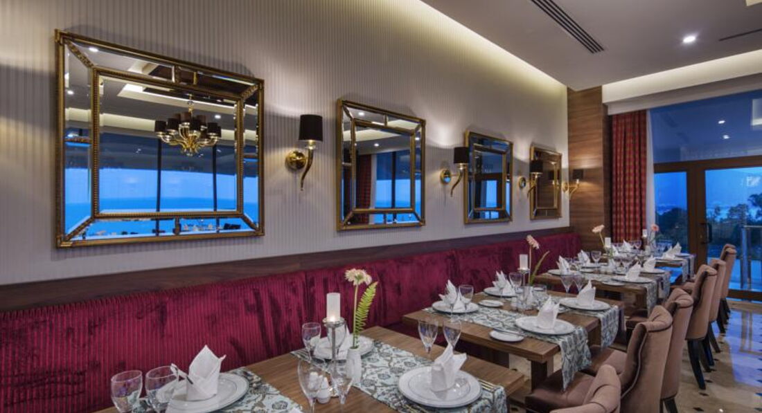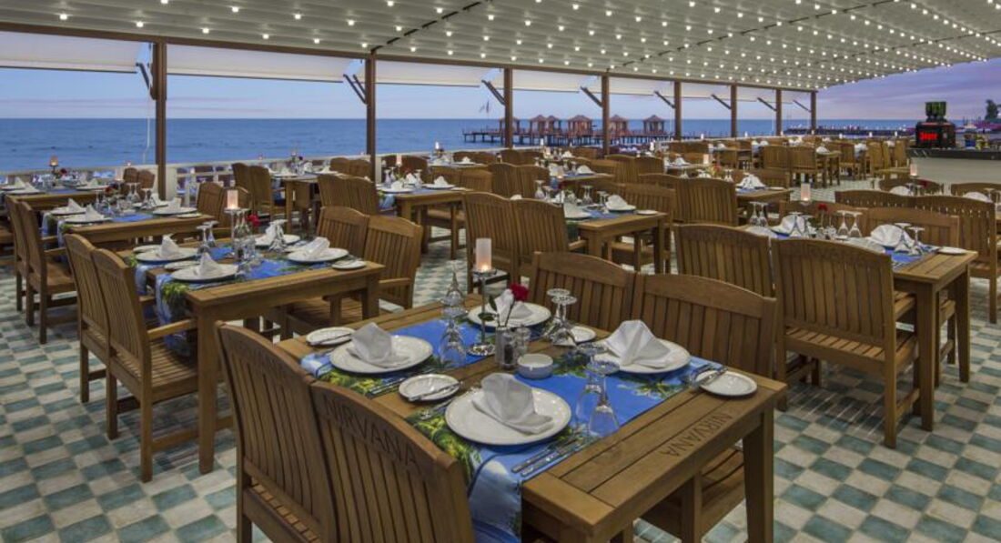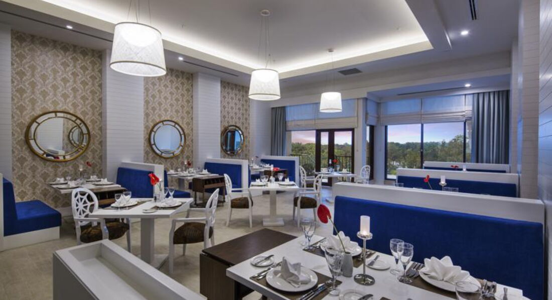 •ресторани a la carte: 7 (мексиканський, морепродукти, середземноморський, російський, стейк-хаус, османський, далекосхідний – за попереднім записом, платно)