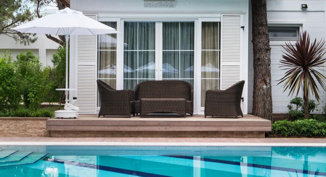 2 трикімнатних grand deluxe beach front suites (індивідуальний басейн, вид на море та на басейн, вітальня з зоною їдальні, кухонний куточок, 2 спальні з дверима, 2 ванні, 2 тераси, 3 тв, макс. 5 чол., 129 м2);