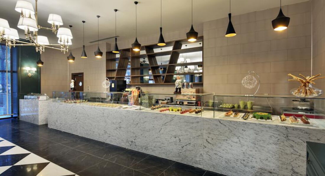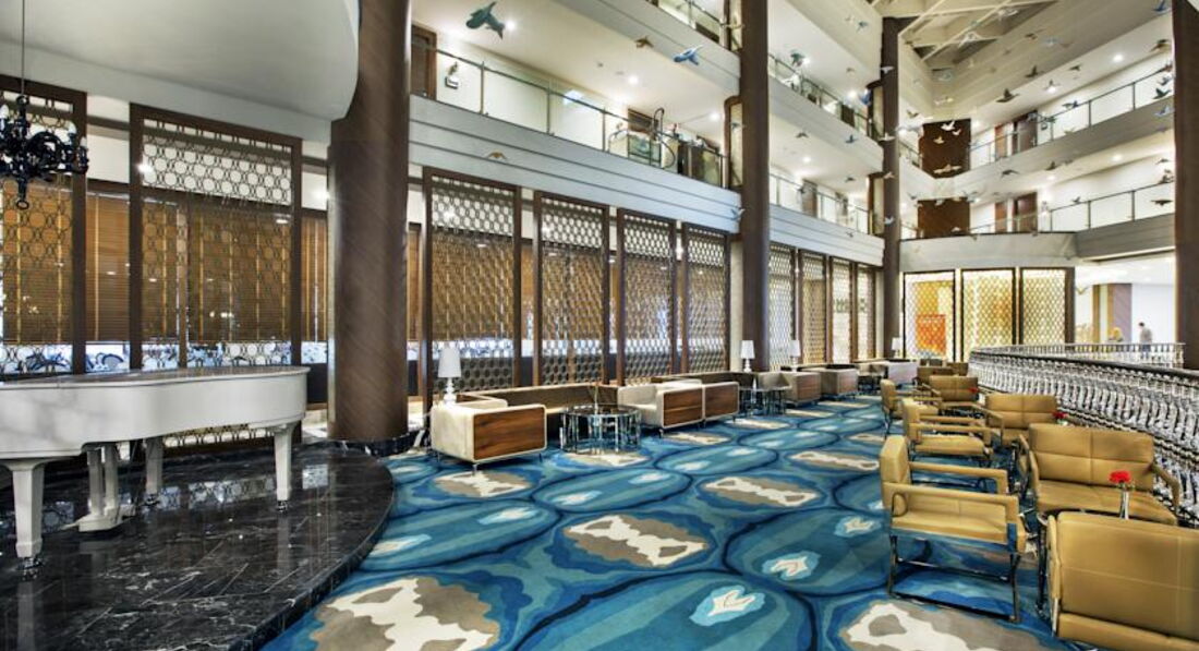 Питание в отеле это его сильная сторона. На завтрак всегда есть свежевыжатый сок,йогурты в упаковке,фрукты,красная рыба или красная икра,огромный выбор сыров,конечно же яйца в разных вариантах приготовления и т.д. Обед тушеное,жареное,варёное мясо,рыба очень вкусная,разные рагу,которые при тебе в чугунных кастрюлях стоят и т.д,короче на любой вкус. Ужин запомнился десертами,это что-то необыкновенное,очень вкусные пирожные,тортики, не говорю о традиционной турецкой пахлаве. Есть круглосуточный ресторан, он в главном корпусе,там заказы по меню, больше это итальянская кухня, все вкусно. Есть ещё кондитерская, тоже расположена в главном корпусе,очень приятное место. Можно выпить кофе (любой), чай, куча десертов,выпечки,мороженое Movenpick. Лобби бар не очень понравился,обслуживание в нем хромает,как и в главном ресторане, так и баре на пляже (см.ниже)