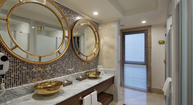 Мы жили в семейном номере, вот он меня разочаровал планировкой: в описании было две комнаты, раздельные двери и одна ванная. На деле оказалась комната с раздельными кроватями проходной, то есть из коридора входишь в нее, проходишь сквозь, далее ванная, а уж потом спальня с большой кроватью. По размерам комната хорошая, в этом номере хороший балкон, два минибара, два телевизора. Если семья с маленькими детьми, то может и нормально, но с нами была взрослая дочь и для нас было неудобно проходить через ее комнату к себе. Хотя, возможно, сами виноваты, так как надо было более внимательно читать описание.