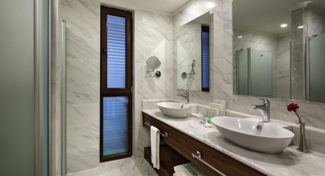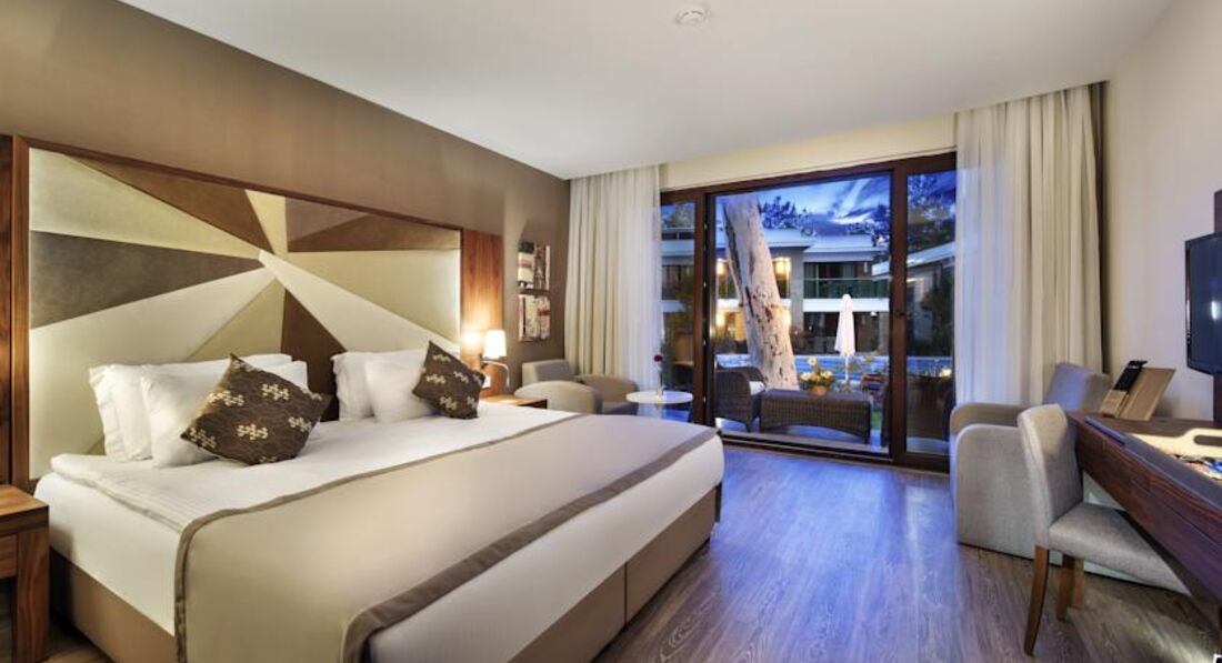 Приехали рано в 10 утра - заселили сразу , за недельку до заезда я списалась с отделом размещения ,и попросила номер на втором этаже и не в главном корпусе ,получили великолепный номер 4228 ( за что огромное спасибо Гюзель)с видом на турецкую кофейню, тихо , хорошо,большая терраса - балкон , плетеная мебель на балконе ,мы были с коляской ,ее оставляли перед ступеньками и спокойно поднимались на второй этаж,Номер очень просторный , в ванной комнате и зубные щетки и зубочистки и лезвия с пеной для бритья ,диски для снятия макияжа , ушные палочки ,расческа ну и шампуни-бальзами - крема соответвенно. Убирались великолепно ежедневно, всегда заправленные кровати ,чистые полотенца ,шампуни по надобности а вот минибар заполняли раза 4 за 10 дней -но на територрии всего хватало ,в номере мы мало находились , поэтому ни разу не звонили с прозьбой его пополнить .Номер советую брать именно на втором этаже так как территория очень большая и зеленая и на первом этаже темно как в подвале .