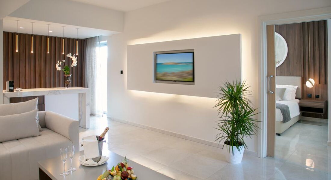 • Junior Suite Sea View (макс. 3 особи, 33 м2) - однокімнатний номер, ванна кімната, балкон з видом на море