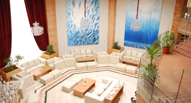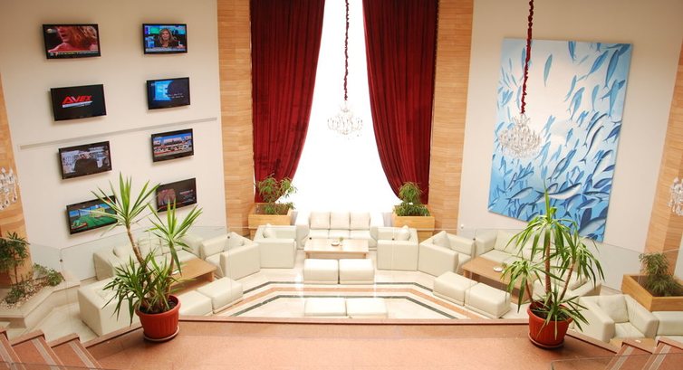 Лобби: диваны из кожзама не мылись видимо никогда, на них видны остатки когда-то разлитых напитков. Столы такие же грязные, как и диваны.