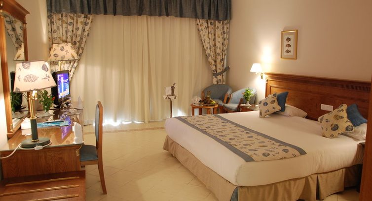 Были в отеле в сентябре 2015 года,заранее скажу,что есть с чем сравнивать.Заселили очень быстро ,даже номер дали,который попросили на 2 этаже.В номере не работал слив в ванной и раковине,на жалобу отреагировали не сразу,пришлось поругаться,в номере грязные занавески,мебель,на кровати волосы,везде пыль,кондиционер очень слабый,древний,но не шумный.Про фен ,это отдельный разговор,это какая то коробка,к ней приделана гофра,как от пылесоса и на неё примотана какая то штука-это фен,вставляешь в розетку шнур,фен работает,вытаскиваешь вилку из розетки ,фен не работает,причём он очень быстро нагревается.Про питание-у многих был понос,готовить совершенно не умеют,всё не вкусное,были 7 дней,была картошка,макароны,рис(2 раза попадались волосы)жирные жареные баклажаны,кабачки,тёртая морковь,капуста,ни чем не мазаная,говядина резиновая,не проглотишь,рыба ,даже не знаю её название,вонючая ужасно,из фруктов- гнилые апельсины,дыни и не зрелые финики.Чай был только на завтрак.Повара в грязной одежде,полотенцем вытирали нос,руки,потом тёрли чашки.Спиртные,гадостные напитки не пили.Официанты в столовой доброжелательные,опрятные.Официанты в лобби баре и у бассейна,немного с тормозами,очень долго ждать,от жажды помрёшь. На пляже отеля морем не пахнет,пахнет бензином,там всегда катера,воду для питья на пляже не дают,лежаков на всех не хватает.Анимации нет никакой.Для детей ,кроме бассейна,совершенно ничего нет.Плюс отеля -это только его большая,ухоженная ,красивая территория..Местные ОЧЕНЬ приставучие,в первый день,когда пойдёте гулять,лучше идите без денег,они покруче цыган,окрутят ,не заметите.С ценой везде торгуйтесь,духи и масла мы купили по 5 долларов,бубены за 3-2 штуки,магниты по 1,папирус средний тёмный за 4 ,+1 маленький за 1 доллар,манго спелые 3 штуки за 6 долларов.Свой отдых оцениваем на 3,не вернёмся в этот отель никогда.