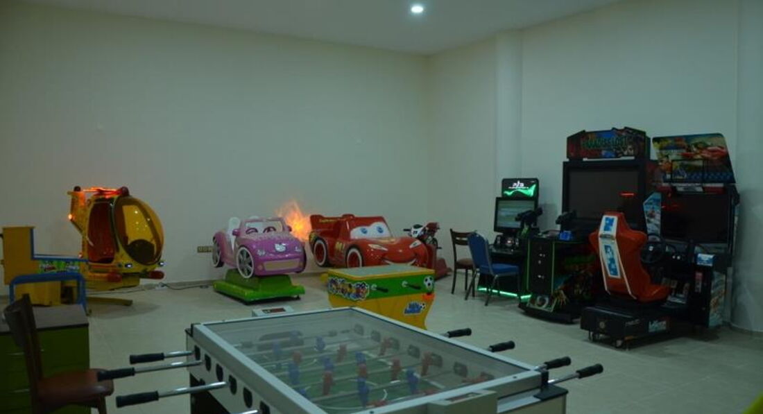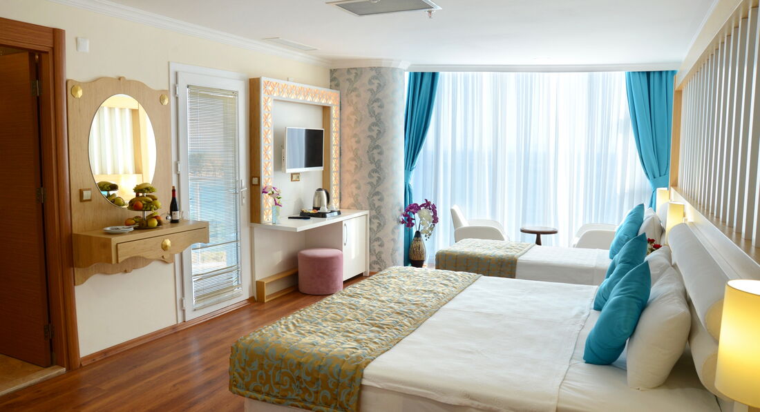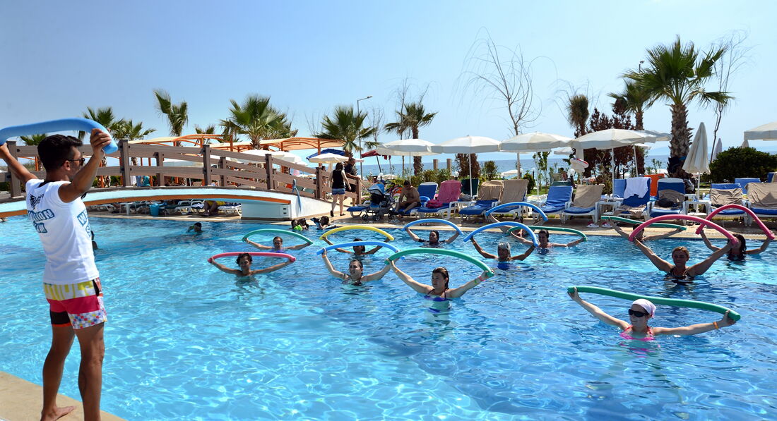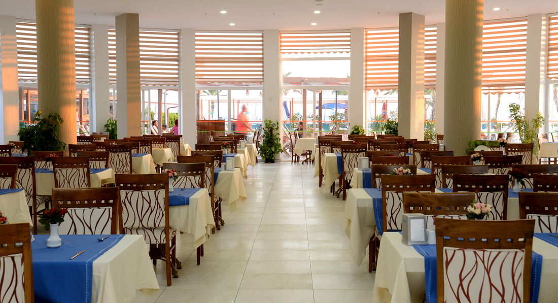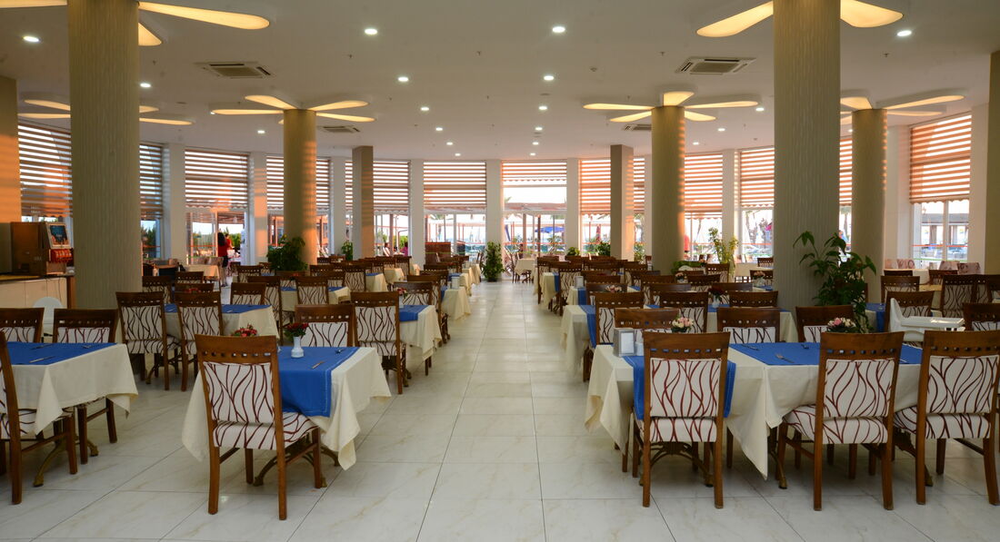 Територія та послуги: • дієтичне меню • спа центр • хімчистка • перукарня • бари: 4 • критий басейн: 1 • конференц-зали: 3 (50 – 225 м2) • ресторани: 1 • пральня • біля басейну рушники: депозит • басейни: 2 (відкриті) • Wi-Fi безкоштовно • біля басейну парасольки, шезлонги, матраци: безкоштовно • Кабінет лікаря • ТВ-зал • водні гірки: 3 • магазини Розваги та спорт: • сауна безкоштовно • аеробіка безкоштовно • дискотека безкоштовно (вхід) • масаж платно • більярд платно • турецька лазня (хаммам) безкоштовно • аквааеробіка безкоштовно • волейбол на пляжі безкоштовно • дартс безкоштовно • водні види спорту платно • анімація безкоштовно Для дітей: • водні гірки: 1 • дитячий буфет • дитячий басейн: є • дитячий клуб (4-12 років) • послуги няні: платно Живлення: • Все включено Пляж: Власний піщаний пляж. Бар на пляжі: безкоштовно. На пляжі парасольки, шезлонги, матраци: безкоштовно, рушники: депозит