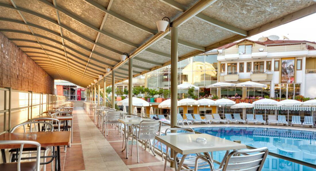 Была в Турции в первый раз ,отдыхом довольна.Конечно были в отеле некоторые неудобства и отель тянет на очень хорошую троечку ,мне кажется что до четырех звезд он не дотягивает из за малюсенького пляжа где все лежат просто очень большой кучей рядышком друг с другом и нет на пляже в баре даже пива только соки и вода ,возможно это плюс и нет на пляже пьяных но пиво хотя бы можно было и поставить ..дорога на пляж идет мимо помоек отелей которые стоят на первой линии порой когда идешь ощущаешь такие запахи что прям не передать ...пляж галька и море...оно прекрасное чистое теплое ласковое как всегда..к морю претензий нет никаких!!!))) Номера приличные у меня был первый этаж и окна были на улицу ,при заселении которое было ровно в 14 часов я сначала была расстроена тем что окна выходят на проезжую улицу но потом как оказалось это был несомненный плюс который заключался в том что я не слышала очень громкую музыку которая играет около бассейна даже в послеобеденное время когда во всех отелях играет тихая музыка релакс ,анимация проходит около бассейна ,я была с утра до вечера на море так что по поводу этого ничего сказать не могу аниматоры на пляже около моря не появлялись ни разу ,вечерняя анимация проходит каждый день но как то однообразно Уборка номеров по быстрому пока не тыкнешь носом на балконе не протирают вообще у меня не убирали дня три непонятно почему может он просто забывал про меня и я уже было хотела идти жаловаться на такое безобразие но пришла с обеда и о чудо!!! .....он убрался и даже пол помыл)))Питание было вполне нормальное голодными никто не ходил как обычно по системе все включено ...без изысков все обычно.Единственное очень неудобные стулья где открытая обеденная зона они из металла ..первый раз вижу такие в отелях..Очень понравилось расположение отеля близко к магазинчикам ,лавочкам ,кафе .Территория отеля чистая зеленая три бассейна ,бар ,В лобби бара нет .Интернет худо бедно работает в лобби ,что тоже немаловажно..Отель рекомендую в основном для молодежного отдыха ,Людям с повышенными требованиями там делать нечего..Конечно я была и в четверках получше но...отель все таки не плохой и в Турции мне понравилось ,вернулась бы сюда снова ,надеюсь на следующий год это повторится но я скорее всего выберу пятерку полагаясь на советы от своих турагентов,