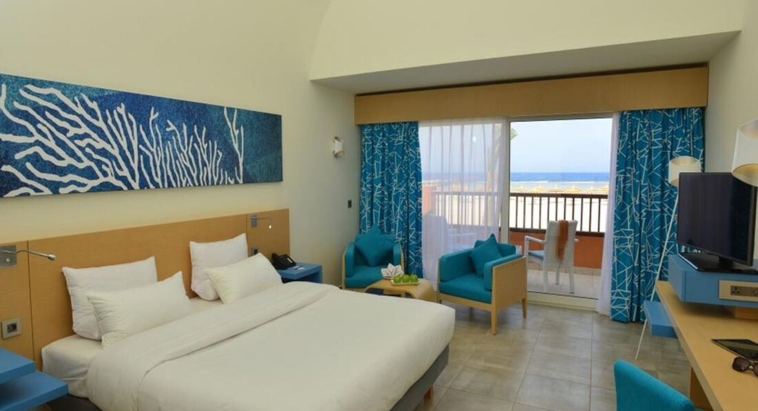 Путевку подарил любимый человек,отдыхала одна. Хотелось уединения, такого себе спокойного отдыха, с минимумом русскоязычных отдыхающих и шумного местного населения. Получила, что хотела.Отличный отель, новый, открылся в 2015 году. На «краю географии», никаких торгово-развлекательных центров, базаров и прочего. Магазинчики со всем необходимым есть в отеле. Просторный номер, отличный ортопедический матрац,хорошая новая мебель и сантехника, чувствуешь себя не «как в Египте». Это реальная пятерка, в отличии от многих так называемых пятерок в Хургаде.Касается и обслуживания, никаких пошлостей и намеков, без «панибратства», персонал вышколенный, отдыхать в одиночку было комфортно. То-же касается и аниматоров.Не проявляешь интереса, тебя и не напрягают, не навязываются. Хорошая кухня,вкусно, продукты свежие. Мне всего хватало. Без претензий. Пляж хороший, песок,чисто. Места много. Плавать удавалось не каждый день из-за ветра. Это огорчало.Прекрасный живой риф, много ярких рыбок, скаты, ежи. Говорят приплывает черепаха, но я к сожалению не видела. Зато видела дельфинов! Единственный недочет, это вход с берега в море. Его нет, мертвый коралл. Плавать только с понтона, отдыхающие ходили далеко в бухту, там вроде бы песок. Я не была,надеюсь что в скором времени и в этом отеле как-то решат эту проблему и будет нормальный песчаный вход. Желания куда-то ездить не было, но все-таки взяла экскурсию на остров Утопия, захотелось хорошего песчаного входа в море)). Брала поездку у проверенного человека по имени Mido bikham, которому доверяю, ни разу не подводил. Давно нашла его в соцсетях, были с ним почти на всех экскурсиях, и всегда все в лучшем виде. Он наверное один из немногих местных, с которым просто приятно пообщаться. К плюсам отеля хочется отнести и крытый теплый бассейн, который работает, когда бассейны на территории уже закрыты. Прекрасно проведенный отдых, масса положительных эмоций, с удовольствием рекомендую! P.S. хороший wi-fi на всей территории, видео тянет.