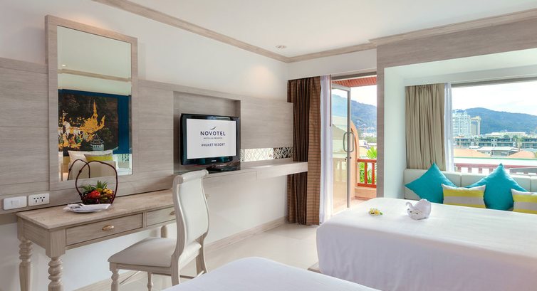 Отель Novotel Phuket Resort 4* очень понравился. Посетили его в ноябре 2013г. Жили в самом "верхнем" корпусе. Балкон номера был огромным и с видом на бухту Патонг и на джунгли. Номер на втором этаже, был просторный, оформлен в тайском стиле. Отель очень тихий, спокойный, чистый, ухоженный, есть 3 бассейна с джакузи и водопадами. Питание в ресторане разнообразное и очень вкусное (брали только завтраки). Пляж через дорогу. В северной части Патонга море и пляж чистые. Рестораны и кафе в шаговой доступности. До магазинов и рынка пешком далековато, но мы любим много ходить пешком, так что для нас это было не проблематично. Отель располагается на холме, до пляжа нужно спускаться по лестницам. Для детей и пожилых людей это не удобно, но на этот случай от рецепшин почти до пляжа можно бесплатно в любое время добраться на мини бас. В ноябре с погодой повезло, дождик был только один день, в номере на этот случай имелись два зонта. В общем отдых в этом отеле могу оценить на 5+. С удовольствием вернусь туда еще раз.