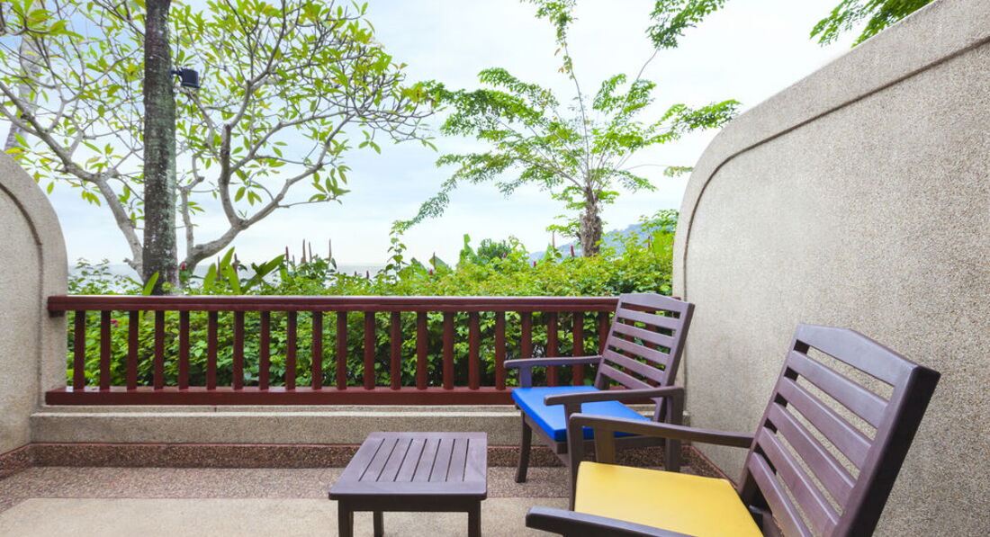 В этом отеле как и везде свои плюсы и минусы. Есть в нем что-то,приятный тайский колорит. Уютно. Но есть такие минусы, которые очень неприятны.За 11 ночей и дней взяли депозит 300 долларов, при сдаче номера в день отьезда вернули . Отель в зелени,в цветочках-красиво.Территория отеля расположена на горе с кучей ступенек. Сначала кажется,что есть в этом что-то, потом очень напрягает. На рецепшен все очень доброжелательные. В зоне рецепшен переодически играет живая музыка,и,напротив рецепшен бар с живой музыкой по вечерам,что создает очень приятную атмосферу. Номера далеко не новые, но неллохие. Огромный минус-отвратительная старая сантехника в номерах,невероятно ужастный душ.. Приятный бассейн на среднем уровне. Пляж через дорогу очень грязный, в воду заходить страшно. Лучше ездить на такси на пляж Карон. Накладно выходит, но пляж там достойный. Брали номер с видом на море,о переплате не пожалели,-приятно. Завтраки неплохие-но однообразные,и фрукты попадались хорошо испорченные-очень неприятно. Вообщем,разок съездить можно,но можно поискать за эти деньги и место получше