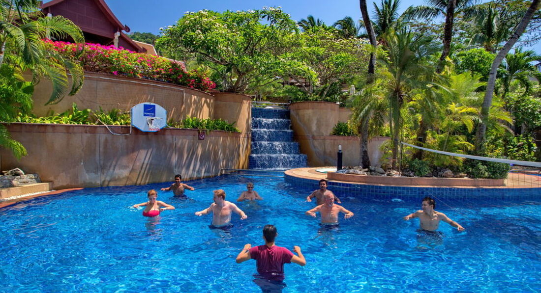 Мы были с двумя маленькими детьми (2 и 4 года). Нам очень все понравилось. При приезде деткам вручили игрушки, а нам ключи от такого номера которого нам еще не доводилось видеть. Главное -это был вид который открывался на весь Патонг бич, красота не реальная.При этом без каких-либо доплап. Нас не напрягал ни спуск вниз, ни подъем обратно. Конечно можно и на машинке подняться, но и так было не тяжело. Очень понравился детский бассей, он с 3 секциями (для малышей, для постарше и для подростков с баскетбольным кольцом и волейбольной сеткой). В общем самые замечательные впечатления от отдыха.