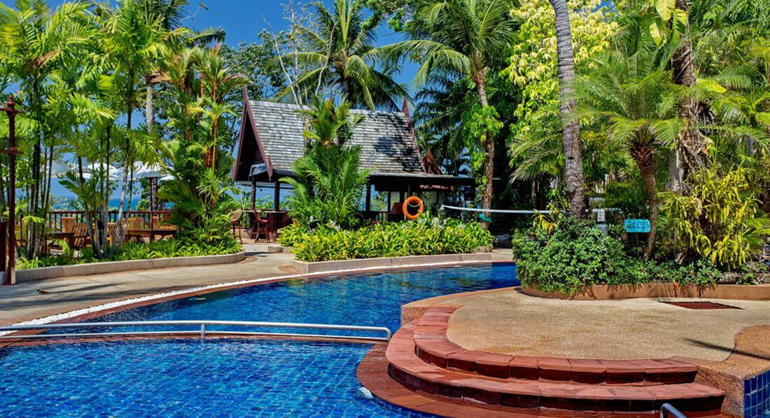 Отель расположен на сопке, от лобби ходит бесплатный шаттл бас вниз и вверх . Очень красиво на территории отеля. Бегают белки и игуаны. Очень красивые создания. Ребенок был в диком восторге, с бассейна не вытащишь. Море через дорогу. Напротив отель находится ресторанчик морепродуктов Калим. По вечерам живая музыка, пели даже Алсу на русском языке. Очень вкусно готовят , и недорого по сравнению со знаменитым Савоем. До джанг Цейлона 2 км на тук туке за 200 бат довозят. Один раз мы даже дошли пешком до отеля, заходили по дороге во все возможные магазинчики, и рынки. Во общем все было суперрр !!!! Рекомендую всем.
