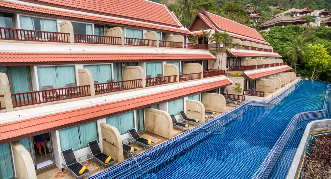 Отель с очень красивой территорией-тропический сад,экзотические птички, на море шикарный вид с возвышенности. Сервис отличный-очень дружелюбный и приветливый персонал. Понравились бассейны-их 3-с водопадом и фонтанчиками. Пляжа своего нет.Кары спускают вас вниз к дороге-через которую пляж(не оч хороший)но если пройти 100м. левее-начинаются городские хорошие пляжи с хорошим уровнем сервиса-ещё левее начнается центральный пляж патонг. В отеле, в основном, отдыхают французы,итальянцы, встречала арабов, достаточно много русских.. Приоритетно семьи с разновозрастными детьми и взрослые пары. Будьте внимательны когда бронируете номер "супериор". У них они все супериоры,но часть из них-без вида на море, а вообще они выглядят как хорошие стандарты (с ванной).