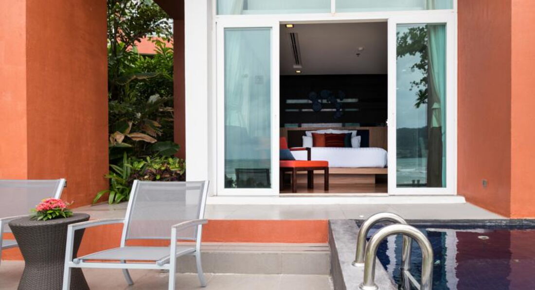 4 Jacuzzi Villa (розташована близько до пляжу, вид на море, спальня з двоспальним ліжком, джакузі на терасі, макс. 2 особи, 42 м2);
