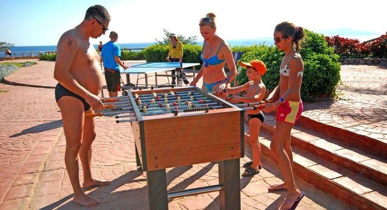 Отдыхали двумя семьями 4 взрослых и 3 детей (3,5 и 12 лет) в Египте первый раз, мы большие любители Турции. Заезд был около семи вечера, встретили соком и канапе. Расселили быстро, мы жили в главном корпусе на 2 этаже и на 3 этаже вторая семья. Номера просторные, большие, ванная комната большая, да мебель не новая но в хорошем состоянии, в номере чисто. Уборка номера каждый день. Питание нормальное рыба, курица, говядина, овощи, фрукты, сладости всё в достаточном количестве, официанты всегда если что-то надо принесут, помогут найти столик. Мы обедали почти всегда у моря в ресторане. Анимаци русском, она слабовата посравнению с Турцией но есть.Читала отзывы что всё для итольянцев неправда. У итольянцев своя анимация, вечером в холле живая музыка на итальянском нам нравилось. Качество спиртного плохое, а пиво нормальное,бутылочное. Погода была хорошая, купались загарали. Море супер. Рядом есть магазины, вечером можно прогуляться, мы покупали криветки по 12$ кг.нам их готовили на гриле, брали с собой и на берегу моря под пиво было очень вкусно. Отель рекомендую