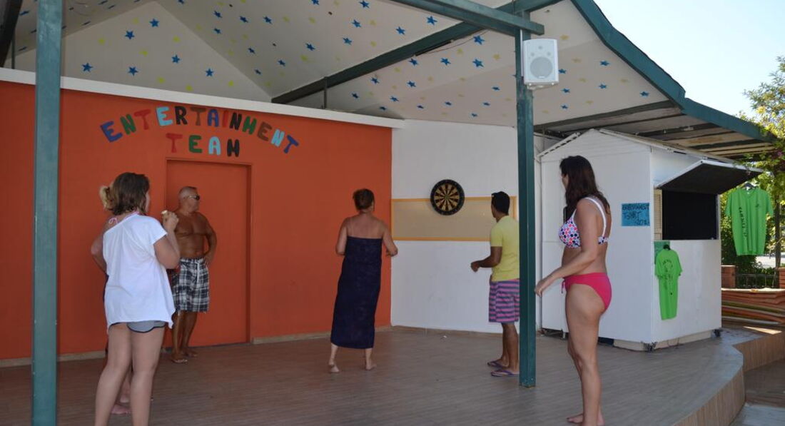 Анимация - кто хотел, тот участвовал. Девушка ( я боюсь неправильно написать её имя - Нурь, кажется) днем предлагала деткам поиграть в мячик - мы играли, танцевали , музыка была замечательная. Дартс два раза - в 11 и в 15 - тоже весело. Детская дискотека каждый день, а потом представления какие-нибудь ( шоу акробатов, турецкая ночь, живое пение).