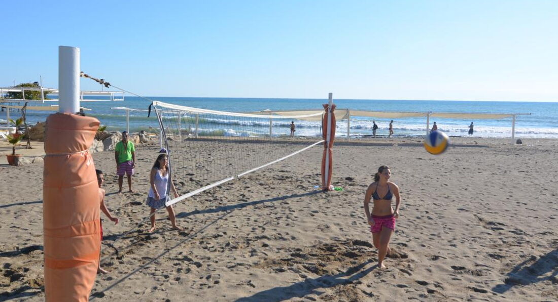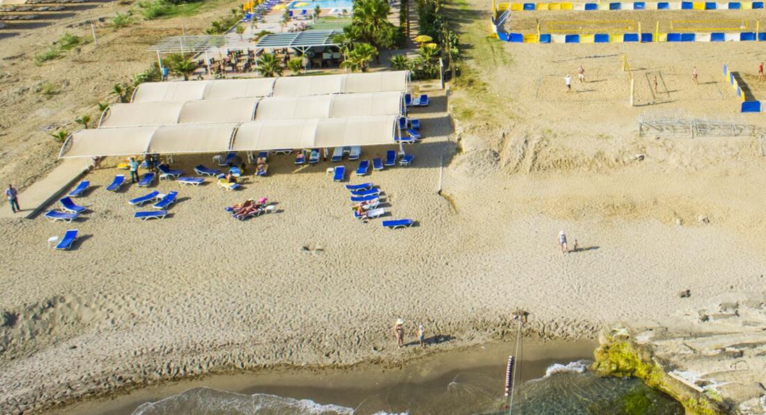 Пляж с лежаками и матрацами,всем всего хватало.Море да есть камни,но это не сильно напрягало особенно при купании в тапках,отплыви на метров 25 и будет тебе счастье без камней.Есть бар на пляже,можно и перекусить(пообедать) и выпить и и просто посидеть смотря на море. На пляже есть так же бассейн не большой и маленький для детей. Народу возле него почти не было.основания тусовка на пляже.WiFI на пляже не работает. но если есть ноги и голова то без него вы не останетесь даже там.(у меня он был)