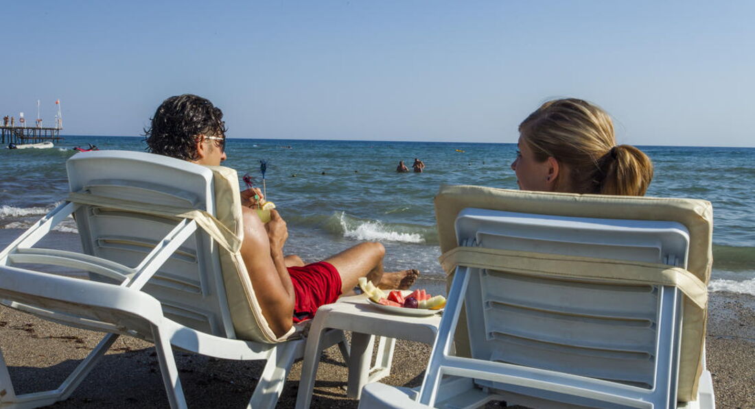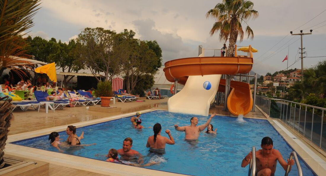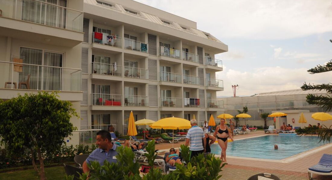 Отдыхала с сыном 10 лет. Приехали в отель в 23:00, комнату предоставили сразу же, на 2 этаже, вполне нормальная и вид на бассейн релакс, где всегда очень тихо. Почти весь персонал русский не знает, но все приветливы и отзывчивы, уборка в номере ежедневно до обеда, без чаевых персонал выполняет свою работу на отлично. Пляж находится в мах 10 минутах ходьбы, мы всегда ходили пешком, идти не долго и прогуляться было охото всегда. На пляже бар с напитками, можно пообедать, но на обеде выбора почти нет, мы обедали один раз, мне не понравилось, поэтому всегда ходили на обед в отель. Также есть и автобус, который ходит ежечасно, на нем можно ездить до отеля, ехать(засекали 1мин55сек). Пляж песочный, вход в море галька, и остренькая, были люди кто поцарапал хорошо ноги, море в мае очень бодрое, поэтому поплавать долго не удастся, я плавала мин по 10(ребенок плавал дольше, ему было прекрасно), температура примерно 20-21градус, и из-за постоянного шторма не прогревалось, но плавали каждый день.Температура воздуха едедневно была около 30, успели и сгореть и загореть. Еда в отеле на 5++++, просто кормили на убой, одно мясо. На завтрак стандартно сосиски, яйца в трех видах(вареные,омлет,и рулетик из омоета с сыром), овощи и разная зелень всегда, разные всякие сухие завтраки с добавками(изюм,шоколад,курага,мармелад,чернослив,и др), блинчики. Обед рис, макароны, спагетти, мясо телятина(жареная, пареная, с овощами), курица(в рулете с овощами, жареная, пареная)рыба(маринованая и жареная), баранина, рыба, жареная и в кляре, морепродукты(мидии, кальмары)вообщем можно выбрать на любой вкус; за время прибываная фрукты были клубника, арбуз,дыня, черншня, яблоки(красные,зеленые), апельсины, грейпфрукты, тоже объелись всего.По поводу еды вообще мне кажется тянет на 5*, правда очень хорошо кормили.Анимация очень слабая; эти два Джона или как их там звать, почти ничего не делают. Хороша была Туркцкая ночь, и мистер Отеля еще посмеялись, а остальное так себе. В отеле очень чисто, бассейны тоже чистенькие, по посуде, говорили, что не промывают, я не видела. Претензий у меня нет. Рядом с отелем есть молл, в нем есть Wai ki ki, кто знает, тот поймет, также продуктовый Migros, идти от отеля мин 10-15, так же рядом дискотека sammer garden, мин 10 ходьбы, вход был платный, я не ходила, т.к была с ребенком, кто ходил сказали не плохо. Вообщем отдыхом я довольна, за свои 40000руб, 10 дней я считаю провела замечательно, даже наверное и вернулась еще...