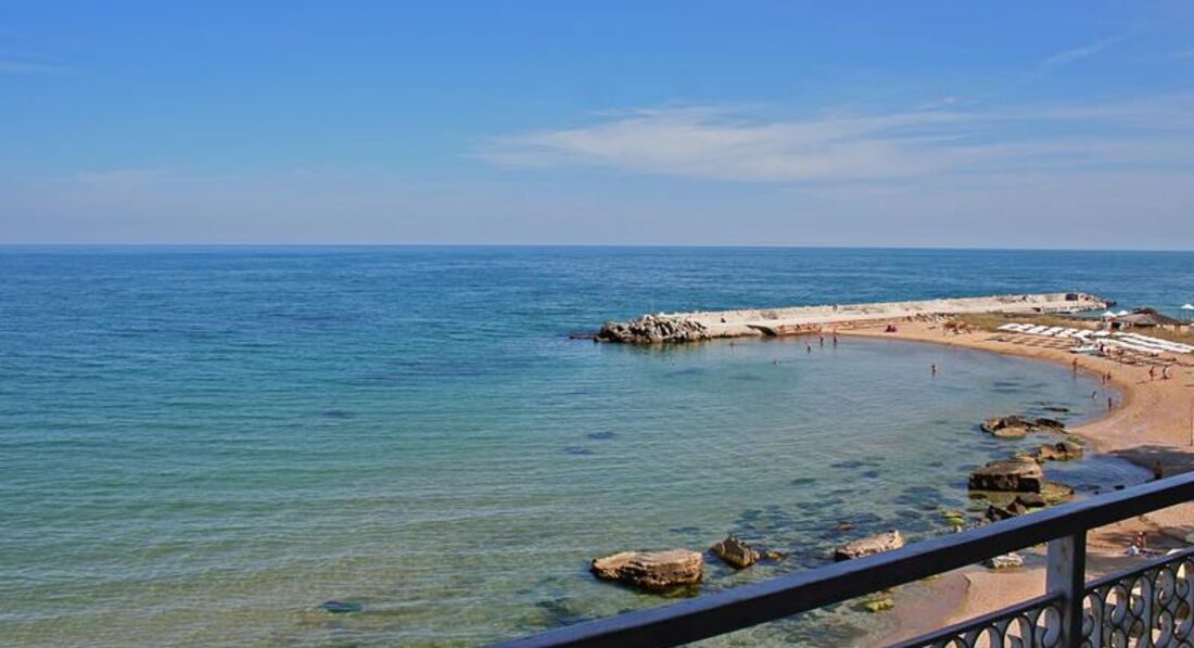 Пляж мне не понравился (в сравнении с Албеной). Неухоженный, грязный. Кругом осколки мидий (постоянно ранили ноги). Перед нашим отъездом пляж убрали специальной машинкой (просеяли песо, собрали ракушки), так сразу же стало мягонько и приятно. Только это надо делать 2-3 раза в неделю(((. На берег море частенько выбрасывает водоросли, только их собирают не сразу. Поэтому запах соответствующий. Так же по пляжу постоянно ходят толпы отдыхающих с Золотых Песков (позагорать без лежаков), даже протоптали тропинку (лично меня это напрягало). Вход в море пологий, мелко. Для маленьких детей это большой плюс. Можно взять полотенце (2 лева в день).