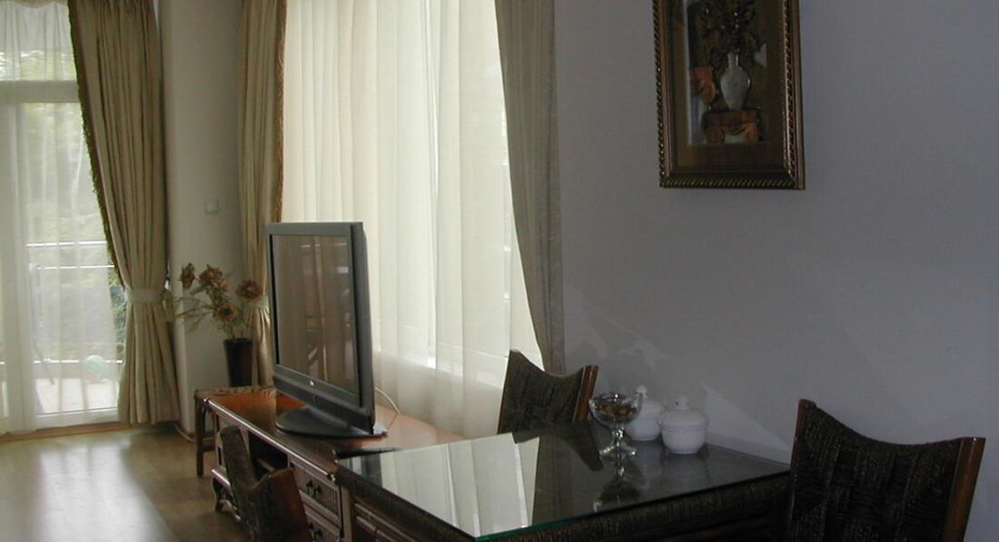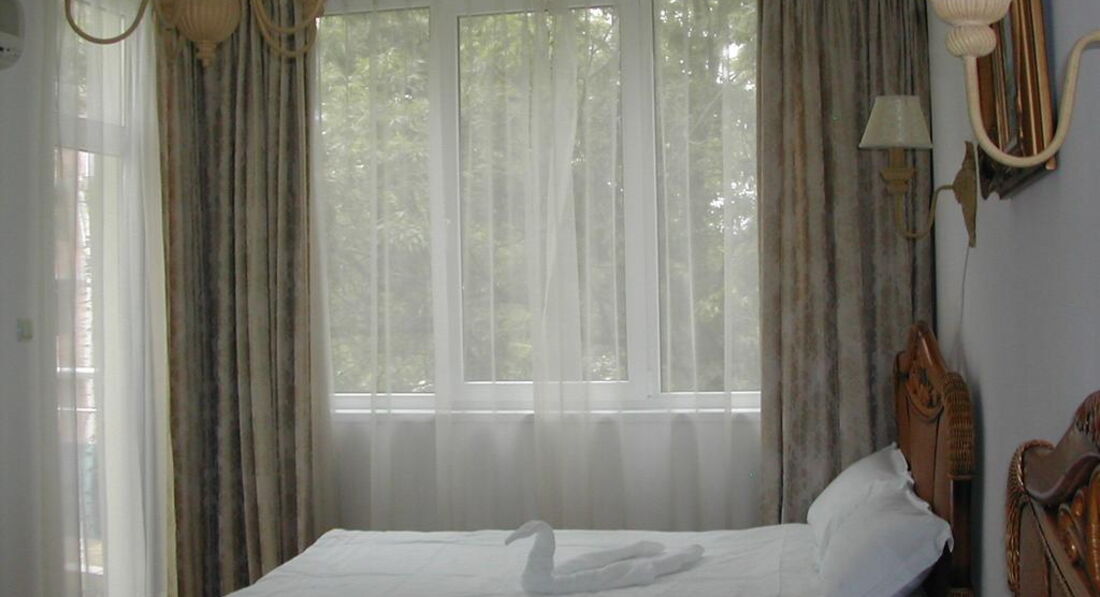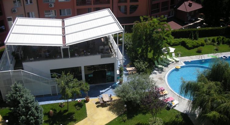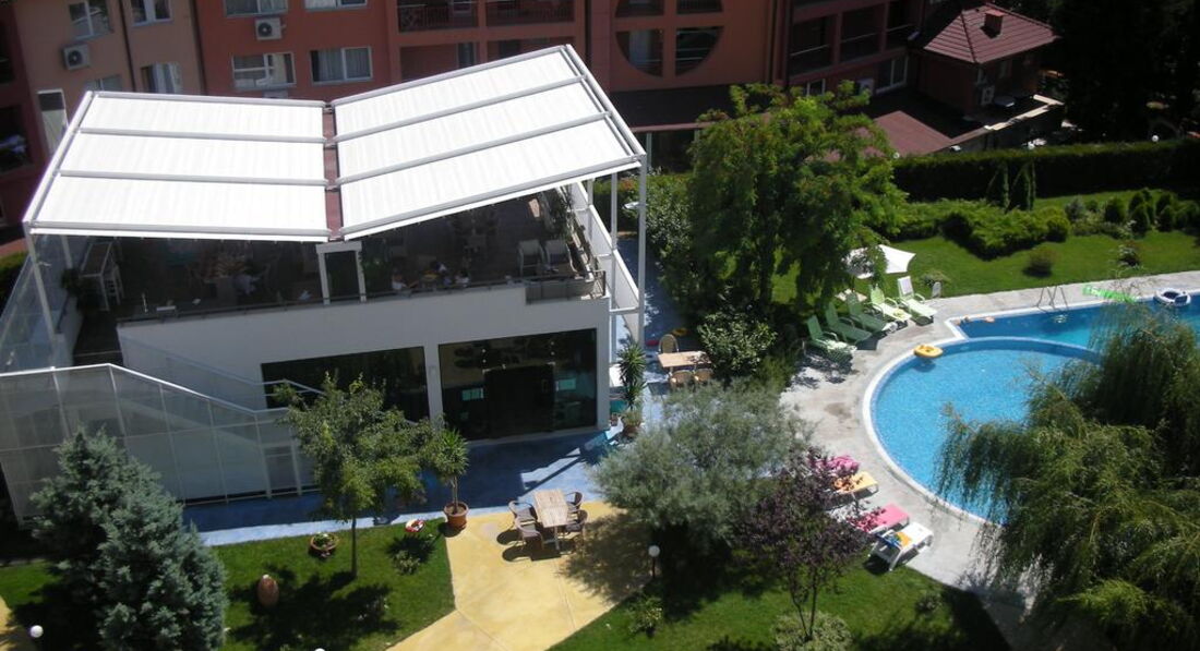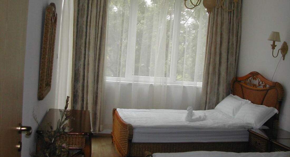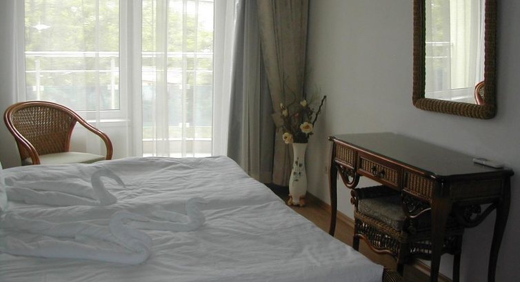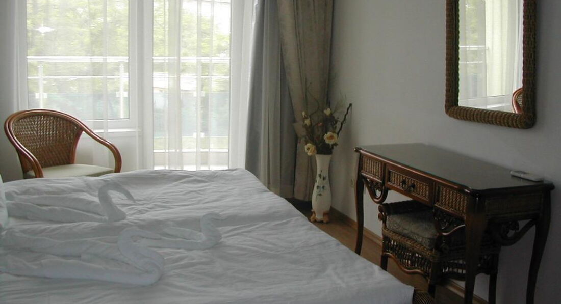 Отдыхали в Несебре с 21 авг по 04 сентября. Выбором отеля остались очень довольны: отель находится в парковой зоне, это единственный отель, у которого есть такая зеленая территория. Даже отели с высшей категорией не имеют такой территории. Номер был просторным, хорошая мебель, сушка для белья на балконе, кондиционер, о чудо - холодильник, который работал и даже форма для льда в морозильнике!!!! В номере был большой плазменный телевизор.