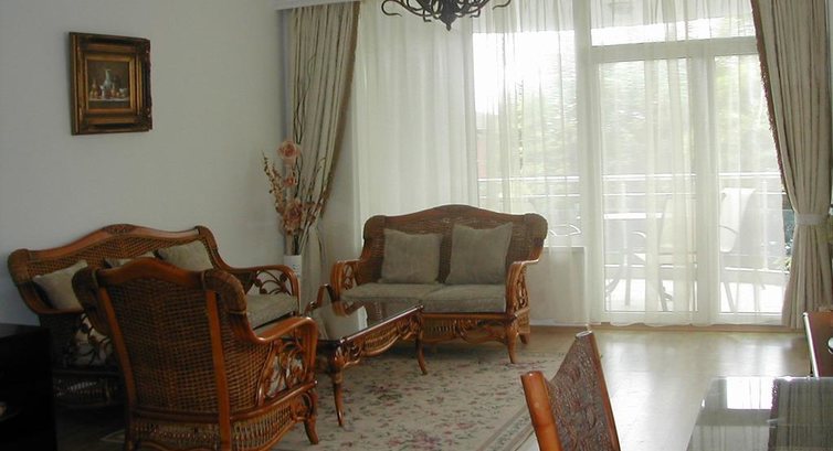 Отель хороший, совсем недавно отремонтирован. Изначально, когда смотрела фотографии, переживала, что будет такая стандартная 3-ка, на снимках была старая мебель, все какое-то потертое. Но ура! У меня было ощущение, что мы приехали сразу после ремонта (по крайней мере, все было чисто и было чувство, что отель совсем новый). У нас (я была с мамой) был номер на 3-м этаже, туда ходил бесшумный лифт. Номер назывался апартаменты. В чем они заключались: две комнаты и ванная. Одна комната с ТВ, баром, балконом, мягким диваном и небольшими шкафчиками, а вторая - спальная: одна кровать, шкаф, зеркало. Вся мебель красивая новая. Ванная и туалет не тесная, вполне приличная, главное новая и чистая. Там же зеркало, мыло, стаканчики. Внимание: в отеле нет фена! (Впрочем мы там его купили неподалеку в магазине, рублей за 200 на наши деньги). Окна у нас в номере выходили на улицу (проезжая, но не сильно), но в принципе там какие-то евро-окна и кондиционер в номере, так что спать не мешали) Персонал положительный, старательный, русский понимают, но на нем особо не говорят. За ресепшн есть сейф, стоит примерно 5 лев в сутки. Мы брали только завтрак. Пища стандартная: омлет, "глазунья", блинчики, колбаса, овощи, фрукты (арбузы, дыни,...) чай, кофе (хороший эспрессо). В принципе, нам хватало... для утра в самый раз. Территория у отеля нормальная, есть летняя веранда, там тоже можно есть, есть небольшой бассейн среди сосен, там бар, лежаки бесплатные... К морю идти вниз через этот парк, потом еще вниз по ступенькам, пляж классный - песок. 2 лежака + зонт стоят 15 лев в сутки (девчонки, деньги за лежаки собирает очень красивый мальчик - на Кевина Костнера похож))) ). Для любителей понырять там мелко: даже возле буйка можно стоять. Так что семейный отдых там рулит. Прямо рядом есть штук 5 ресторанов, где тебя накормят за 20-30 лев, еще есть дискотека-бар в форме корабля, я его не застала, он только собирался открываться. От отеля минут 15-20 пешком до старого города. Там сумасшедше красиво - уютные старые улочки, небольшие домики, все в цветах, чайки - просто мечта! Прямо через дорогу от отеля начинается улица нового города - там много магазинов с одеждой и всякой еды - все дешево, вкусно и всего хочется) В супермаркете бутылка вина стоит от 2 до 6 лев, это от 40 до 200 рублей, в ресторане она же стоит от 9 до 12 лев) До Солнечного берега - ехать минут 5-10, там куча новых отелей, клубы и прочее. Ездила на экскурсию в Созопол, похож на Несебр очень сильно. Болгары очень все милые люди и там правда красиво, езжайте, пока и на них шенген получать не надо)