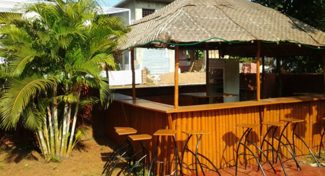 3. Территория у отеля не очень большая и на ней ничего нет кроме газона, ресторанчика под навесом, рядом другой навес с биллиардным столом и домик, в котором живут работники отеля. Плюсом дворика является то, что он продолговатый и отделяет отель от дороги, к которой он обращен фасадом. Примерно метров 40.