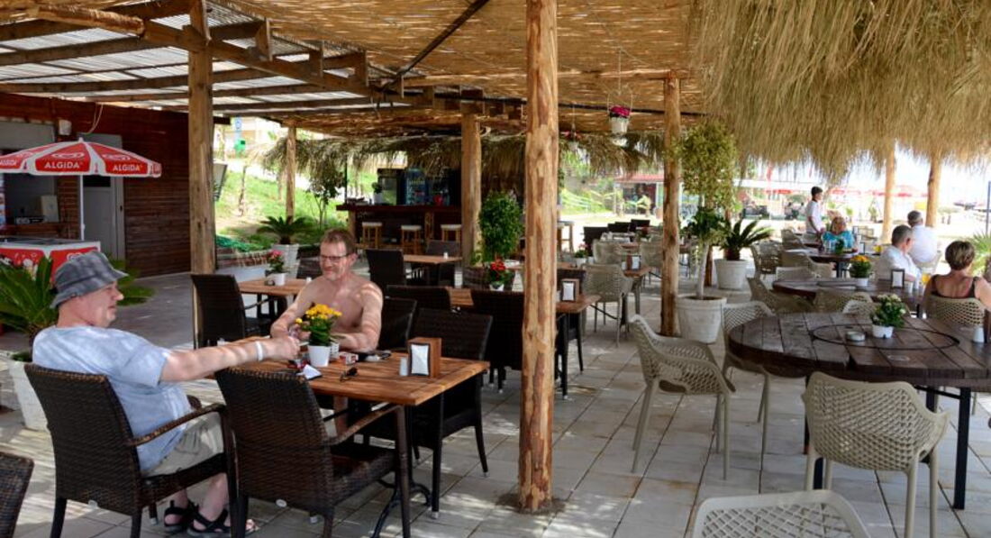 Да по русски на ресепшн не говорят, но объясниться можно. Очень много немцев, не напрягает. На пляже есть бар, алкоголь очень редко бывает бесплатным. Когда бармены захотят тогда и наливают. Платно только матрасы, все остальное бесплатно.До пляжа хотьбы 5 минут.