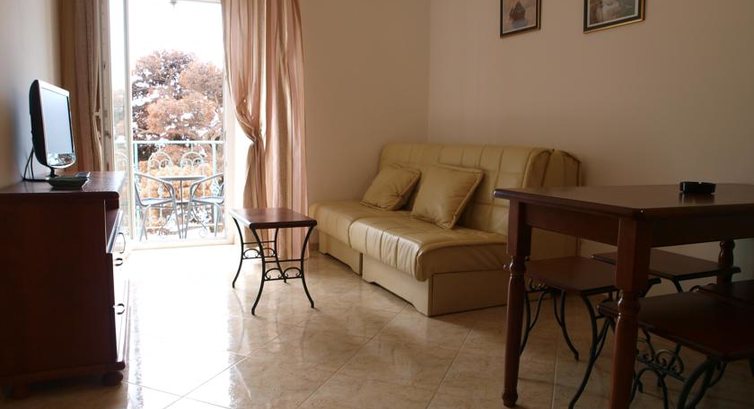 Для розміщення пропонується – 3 двомісні студії, 2 тримісні студії, 5 чотиримісних апартаментів та 2 чотиримісні апартаменти люкс з видом на море. Одна двомісна студія має вид на море, але не має балкону, інші студії 02 мають французький балкон і вид у двір.