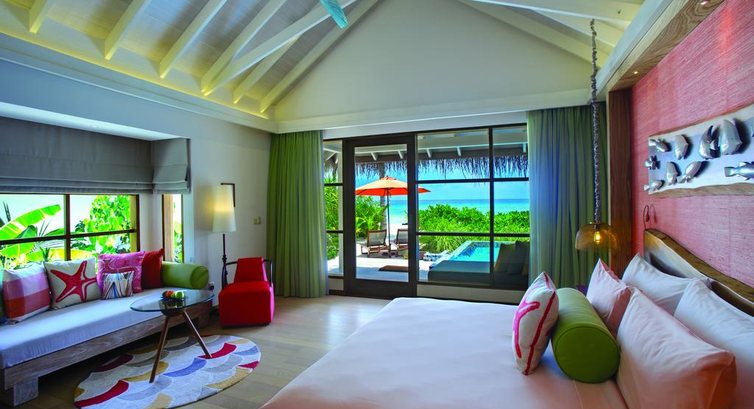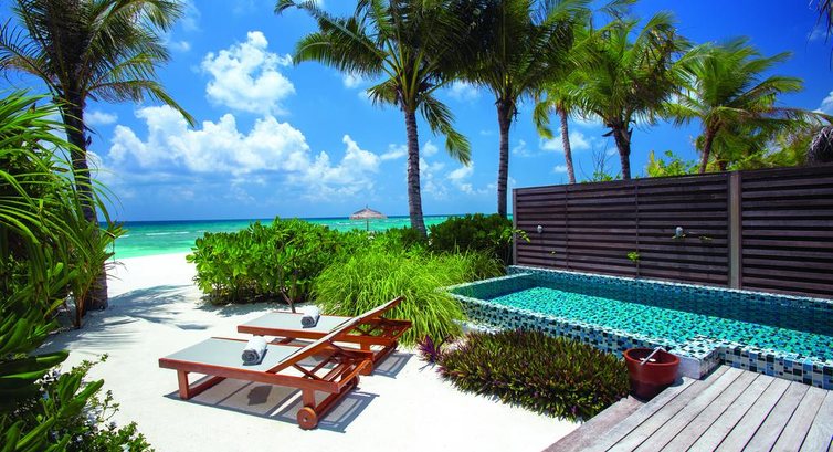 • 2 BEDROOM BEACH POOL SUITE номер площа: 152 кв. м, 2 спальні, 2 ванні кімнати, вітальня, власний басейн, тераса, вид на море і сад