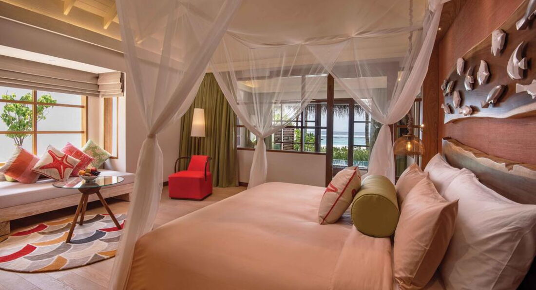 • BEACH VILLA номер: площа: 81 кв. м, спальня, ванна кімната, тераса з видом на сад і море