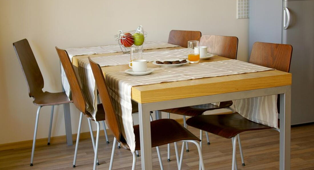 Кухонный уголок очень компактный. На плите не умещаются одновременно две сковороды среднего размера, поэтому в приготовлении еды это всегда следовало учитывать, соответственно и комбинировать с меню. На одной из сковородок было повреждено тефлоновое покрытие, но нам не стали ее менять, несмотря на двукратное обращение на ресепшн. Однако, чайник, который нещадно тек, поменяли на следующий же день.