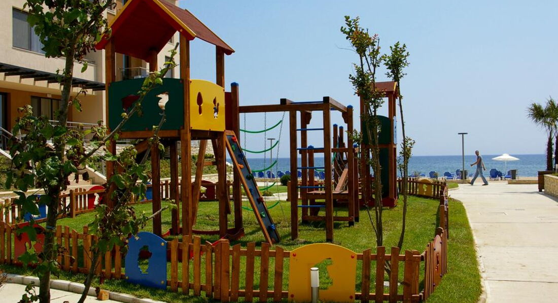Шикарный пляж, чистое море . Детские площадки и мини клуб.