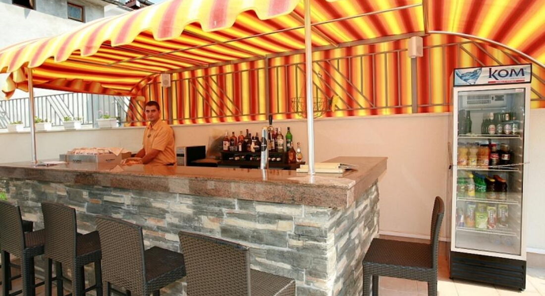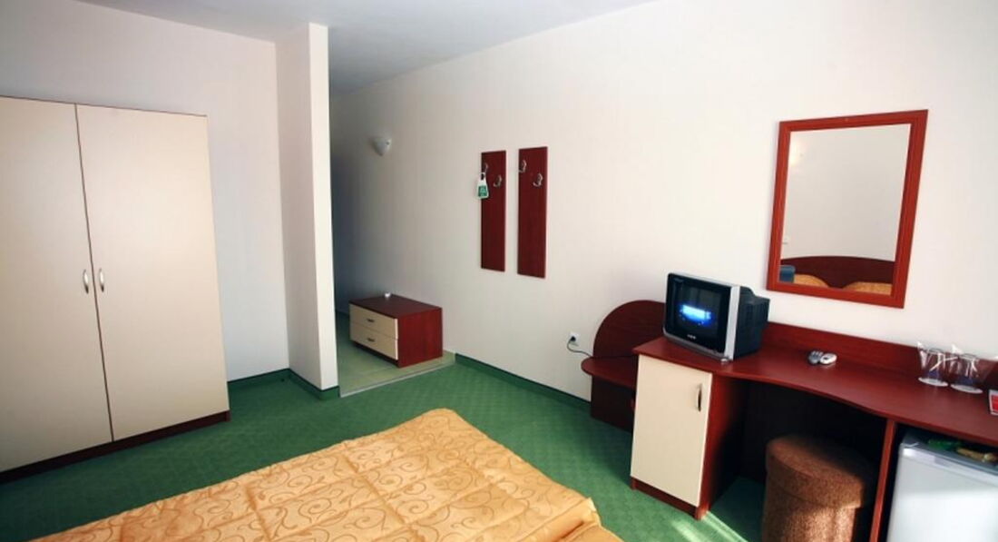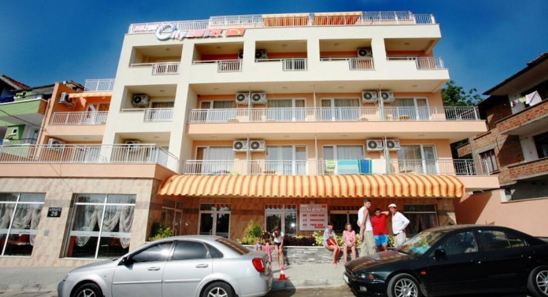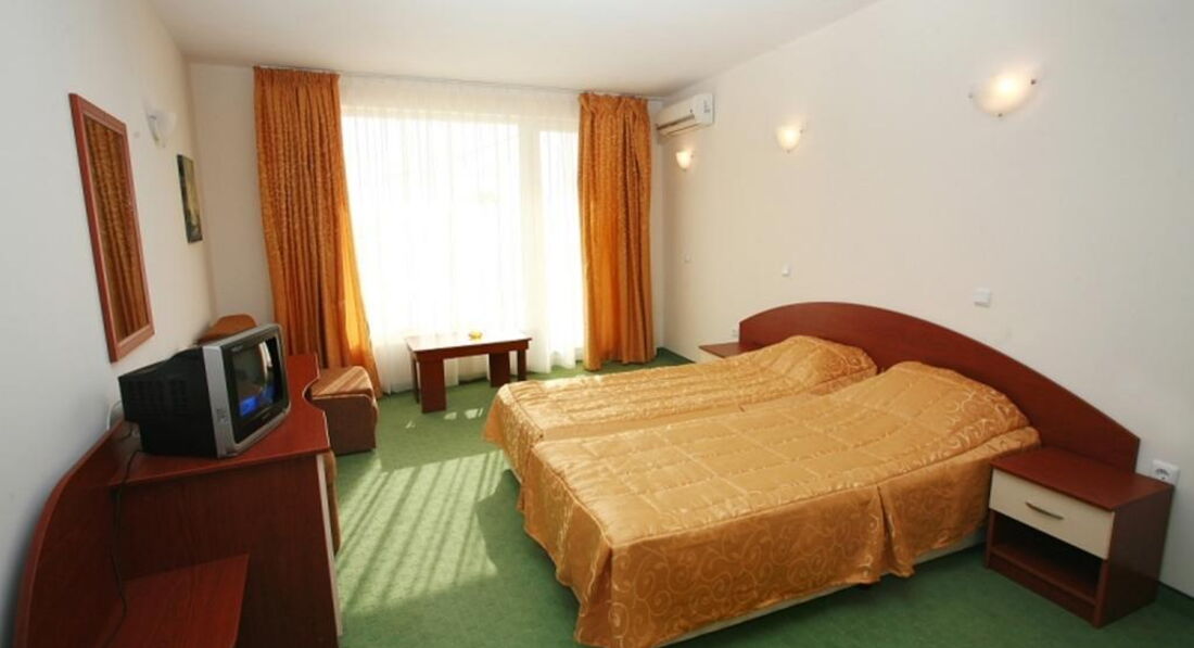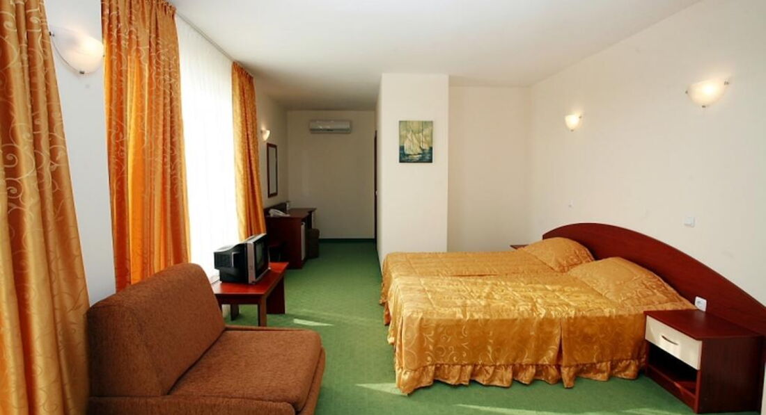 Пишу свой отзыв из отеля. Отельчик небольшой, свежий, номера большие, мебели достаточно. По поводу услуг, предоставляемых отелем в номерах. Мини-бар - отсутствует. Маленький холодильничек имеется в номерах, но практически не холодит и работает только при наличии ключа-карточки в разъеме. Сейф есть, но он платный, а не так как заявлено в описании, 2 лева в сутки. Интернет! Это отдельная история. Он как и сейф - платный, тоже 2 лева в сутки. Но это еще ничего если бы он работал, каждые 5 мин. требуется введения спец.кода для получения сигнала, но и это ерунда - сигнала просто нет. Для информации напишу, что утюг и гладильная доска стоят в коридоре на каждом этаже, но включить его не удалось, хотя видела, что персонал гладил, т.е. рабочий. Фена в номере нет. Для сушки белья используется веревка (можно привезти с собой), привязанная к перилам на балконе. С уборкой номеров тоже сложности, за 4 первых дня в номере не убирали, поинтересовались на рецепции, когда это случается, нам удивленно ответили, что горнечные бывают каждый день - мы не заметили. Кстати, напомню, что полотенца для замены нужно бросать на пол. Прошу модераторов внести изменения в описание отеля относительно платных и бесплатных услуг в номере. Кондиционер работает хорошо, на ТВ особо не расчитывайте - все каналы болгарские, один РТР-планета. Телевизоры - 14" старые, пульты не работают. Так что можно считать, что этой услуги нет. Огромный плюс этого отеля - это его расположение. Находится в тихом квартале, хотя в непосредственной близости к центру города и также морю. Очень удобно. И просто для информации. Курс лева к евро - 1.92/ 1 евро. Шезлонги и зонты на пляже платные - все по 6 левов, большинство отдыхающих загорают под своими зонтами и на своих ковриках (можно преобрести здесь - зонты от 10 левов, коврики от 2-10 левов). Море сказочное, чистое и лазурное. И это сглаживает все мелочи. Пробудем в этом отеле до 13 августа. Могу ответить на интересующие вопросы.