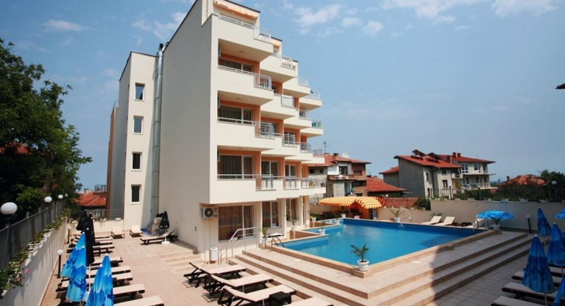 Отдыхаю в этом отеле со внуком. Идиальное место для отдыха и общения. Тихо. Спокойно. Спим с открытым балконом. На улице тишина. И днем, и ночью. Номера чистые, удобные. В номере правильный кондиционер, холодильник, сейф. Wi-fi во всем отеле. Завтраки обычные. Голодным не будешь. Без изысков. Персонал очень приветливый. Сегодня на море волны. Отдыхаем у бассейна. Одни.... До моря идти минут 7. Утром можно не встретить ни одного человека. Море чистое. Лежаки и зонты платные. 12 левов лежаки и зонты. Это около 6 евро. Обед и ужин в ресторанчики на набережной Морской бриз. Ребенку беру куриную лапшу 2, 2 лева (1,1 евро), себе салат и еще что нибудь. Счет средний 12 левов. Ужин дороже. Очень вкусно для ребенка горшочек пюре с курочкой под сыром. На рынке самая лучшая черешня 150 рублей. Так что место для отдыха с ребенком ЛУЧШЕЕ! И НЕТ НАВЯЗЧИВОГО СЕРВИСА И БЕЗУМНЫХ КРИКОВ АНИМАТОРОВ. Тихо и спокойно. Здорово!