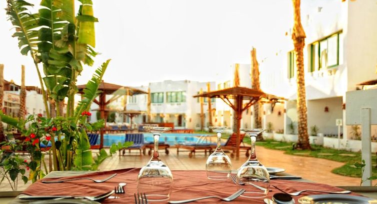 отель просто швах!!!!!3 звездами здесь даже не пахнет,еле еле 2!!!в номерах просто ужас:грязь несусветная-пыль везде,размазанные комары по стенам,пол грязнючий-его просто подметают вместо помыть!!! кроватей для детей нет-нам принесли раскладушку!!!в ресторане если это можно так назвать поесть нечего-все вечно острое и невкусное.настоено больше на арабов чем на других людей!!детских стульчиков нет,соотвественно и детям есть нечего!разнообразия никакого:рис ,макароны,овощи и так каждый день и все время!!!чай только на завтраке,соков вообще нет-юпи из пакетиков!!!одна газировка и вода.при заселении воду не дают и набрать ее негде,только купить в магазине при отеле!!!пляж песчаный,но совсем не тот что на фотографиях-обманывают!!!никому не советую ехать в этот отель-конечно если вы не экстримал или вам нужно просто место для ночлега,так ка вы на экскурсиях !!!!!я думаю что за такие деньги можно и получше найти!!!!