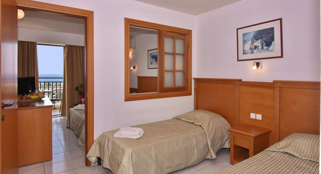 • Family Room (35 кв. м) номер із двома роздільними спальнями. У першій кімнаті одне велике ліжко, у другій кімнаті два окремі ліжка. Кондціонер тільки в основній спальні. Вид на сад