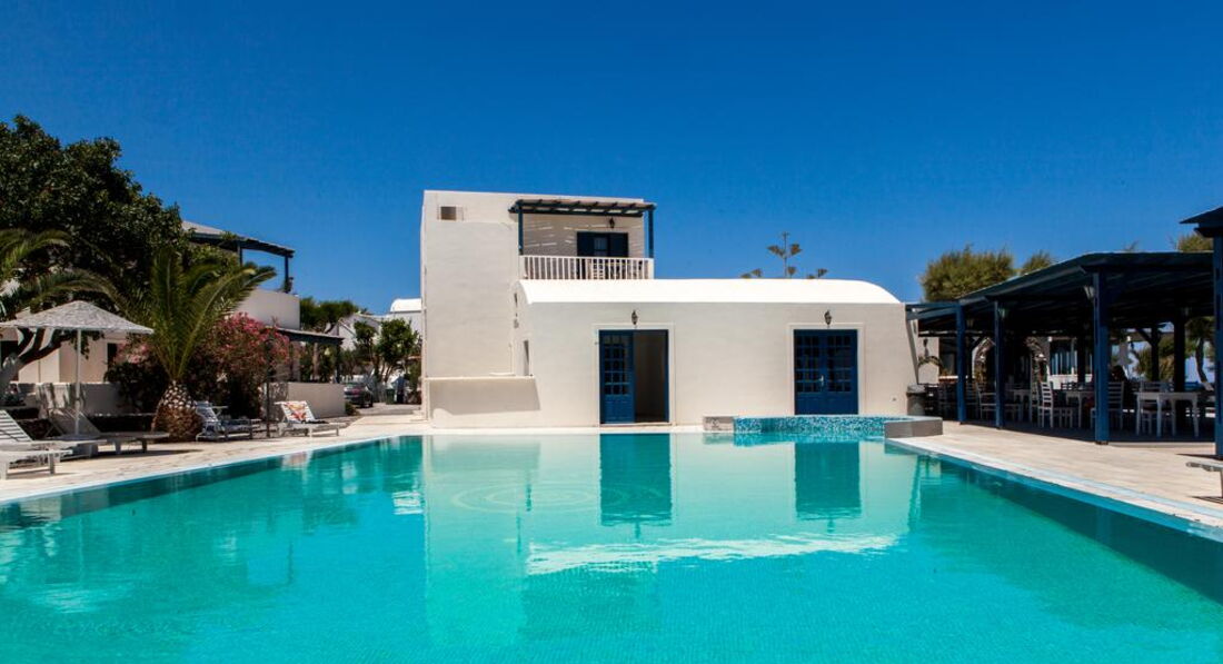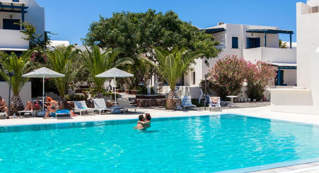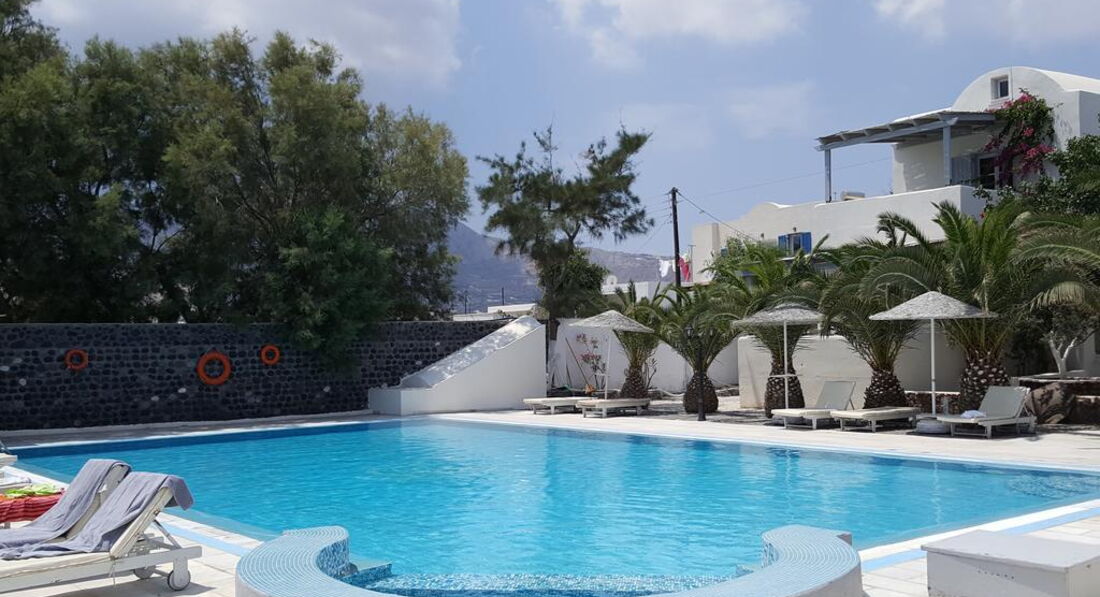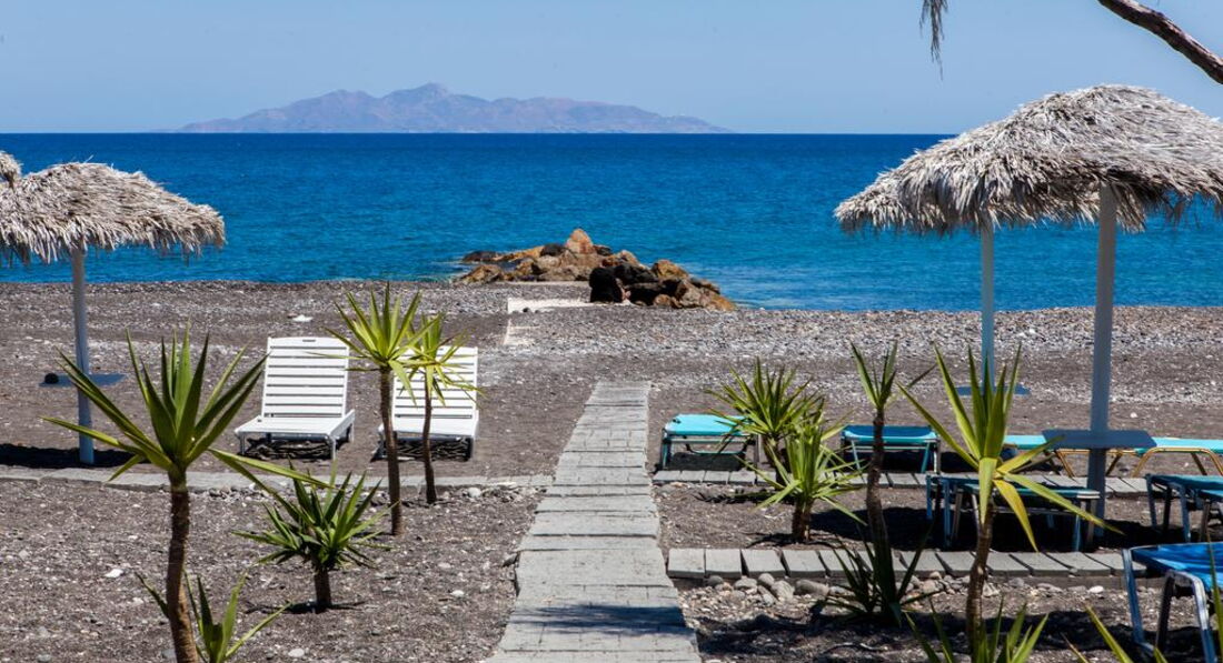 Сімейний готель Okeanis Beach побудований у 2001 році у традиційному архітектурному стилі Кіклад у тихому місці, де знаходяться найкрасивіші пляжі острова Санторіні. Стильно оформлені комфортабельні номери пропонують всі сучасні зручності та чудовий вигляд із вікна. Це прекрасне місце для відпочинку та веселощів гостей, які віддають перевагу активному способу життя, а також сімейним парам з дітьми.
