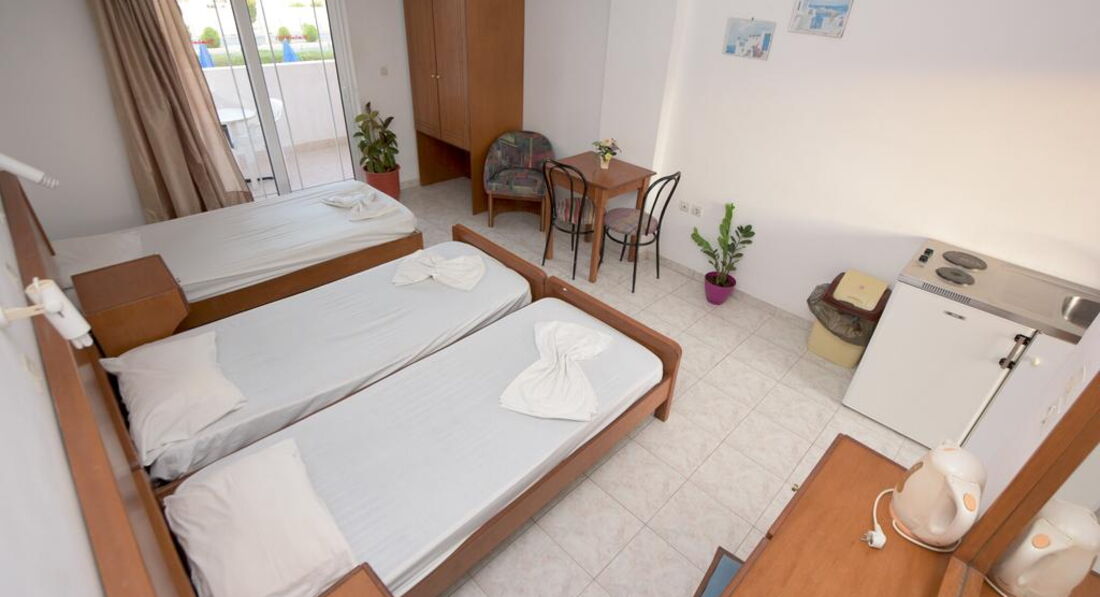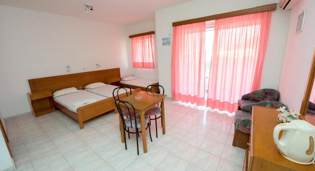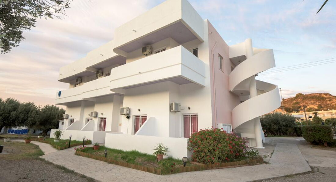 Готель був відкритий у 1995 році, розташований у селищі Фаліракі за 10 хвилин ходьби від центру. Пропонує просторі номери-студіо з обладнаною міні-кухнею, відкритий басейн, снек-бар та ресторан. Рік побудови готелю 1995, поверховий будинок, маленький готель. Кількість номерів: 21. Номер 20-50 м2.