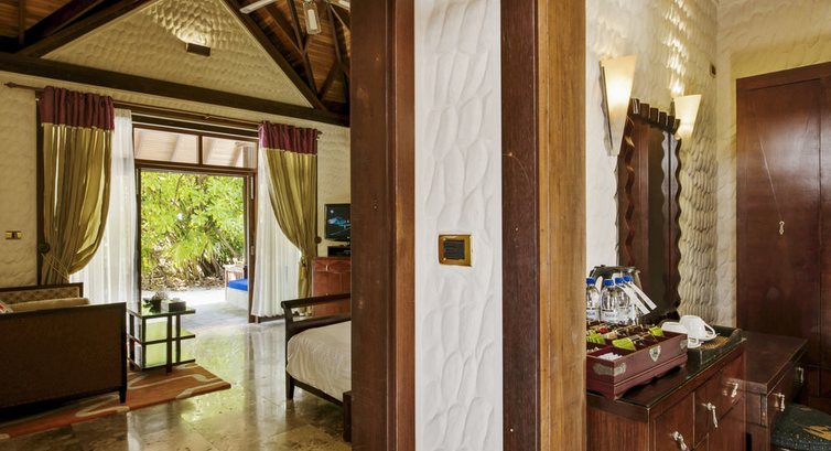 Это была наша третья по-счету поездка на Мальдивы, так что есть с чем сравнить). По-моему мнению на четверку он не тянет вообще.Останавливались в бич-вилле с садом , ванной и туалетом на улице. Красиво-не спорю. Но по вечерам в номере настолько темно, что даже сравнить не с чем). Освещение практически идёт от двух настольных ламп, стоящих на прикроватных тумбочках)))). Пожаловались на темноту.....нам пришли и поменяли лампочки в этих же лампах)))). Больше , сказали, ничем помочь не могут! Пару раз видели по вечерам крыс, пробегающих...но это все мелочи, по-сравнению с тем, что меня попросту " зажирела" мелкая противная мошкара, которой здесь в изобилии... территорию я не видела, чтоб обрабатывали за 10 дней ни разу.Обслуживание оочень медленное. К тебе подлетают , допустим, на обеде, спрашивают " что будете пить?", и все....дальше свой кофе вы уже видите после того как все съели, десерты тоже....ну либо нам так просто везло и мы такие с мужем незаметные). Все конечно сглаживала красивая природа, рыбки.... но больше в этот отель мы не поедем точно!