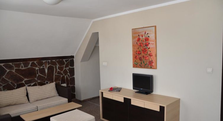 Apartament (1-й варіант: спальня з двоспальним ліжком та вітальня з розкладним диваном; 2-й варіант: дві кімнати з двоспальним ліжком у кожній; без міжкімнатних дверей, макс. 4 чол., 36 м2);