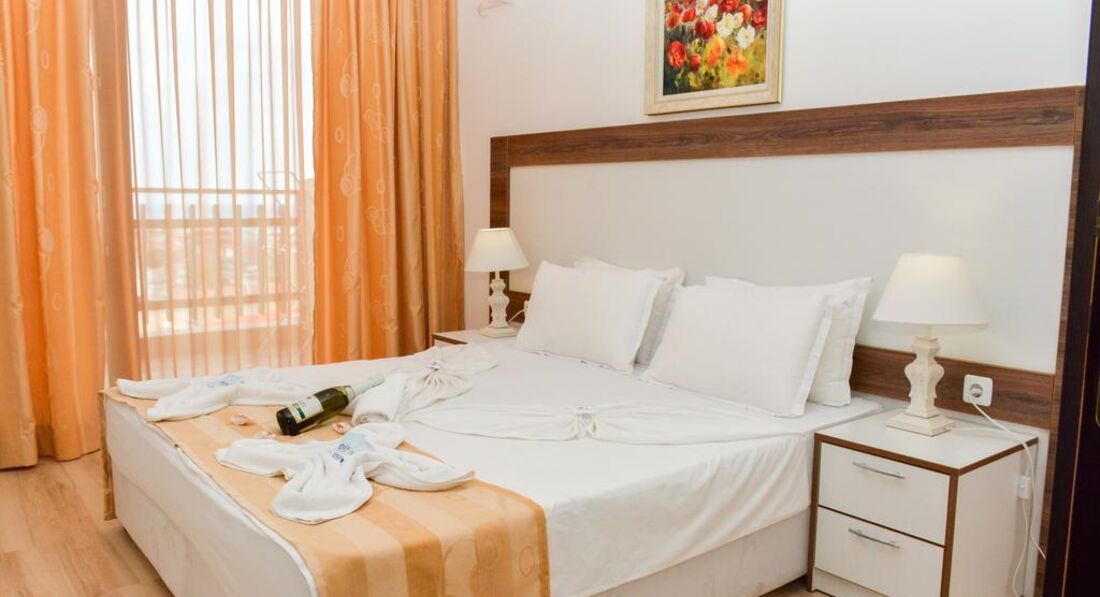 На ресепшн сказали, что раннее заселение стоит 15 евро, если не хотим платить,то ждать до 14 часов. Это было очень неприятно и за такое отношение отелю огромный минус. Видели ,что с маленьким ребенком, уставшие и голодные и дерут деньги , хотя наш номер был убран и свободен. Обычно, наоборот, идут навстречу туристам, а тут зарабатывают, как могут. Номер у нас был студия-апартаменты, на первом этаже с видом на бассейн. Днем и вечером бегают и верещат громко дети, а так достаточно тихо, ни музыки, ни дискотек, ни бара. В отеле в основном русские и немного болгар.