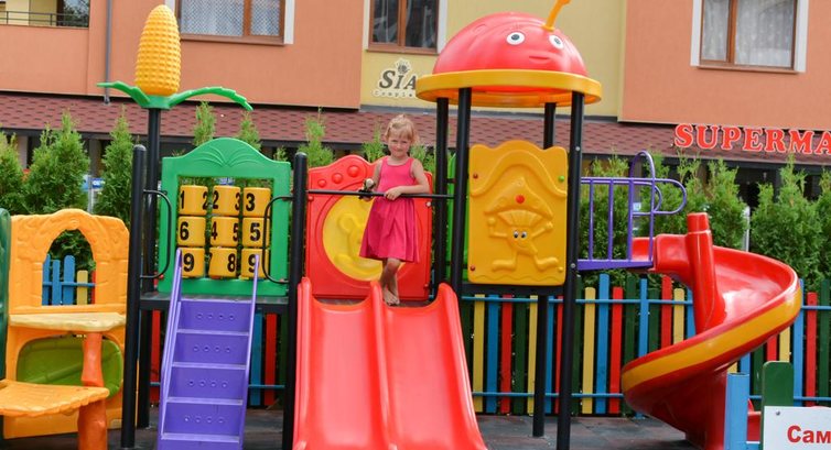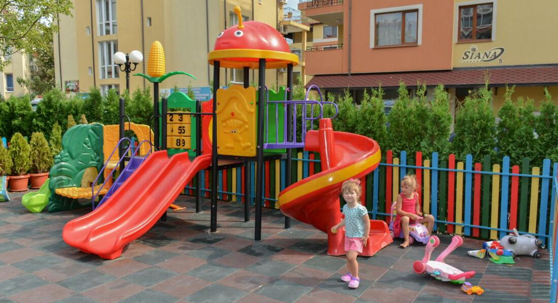 В отеле есть маленькая детская площадка, рядом с отелем есть платная детская площадка, 30 мин-7 лев,1 ч-10 лев. Там и батуты, и мячи, и горки и много всего интересного для ребенка. Там же рядом овощная-фруктовая лавка, все местное и очень вкусное, хотя тоже дороговато.