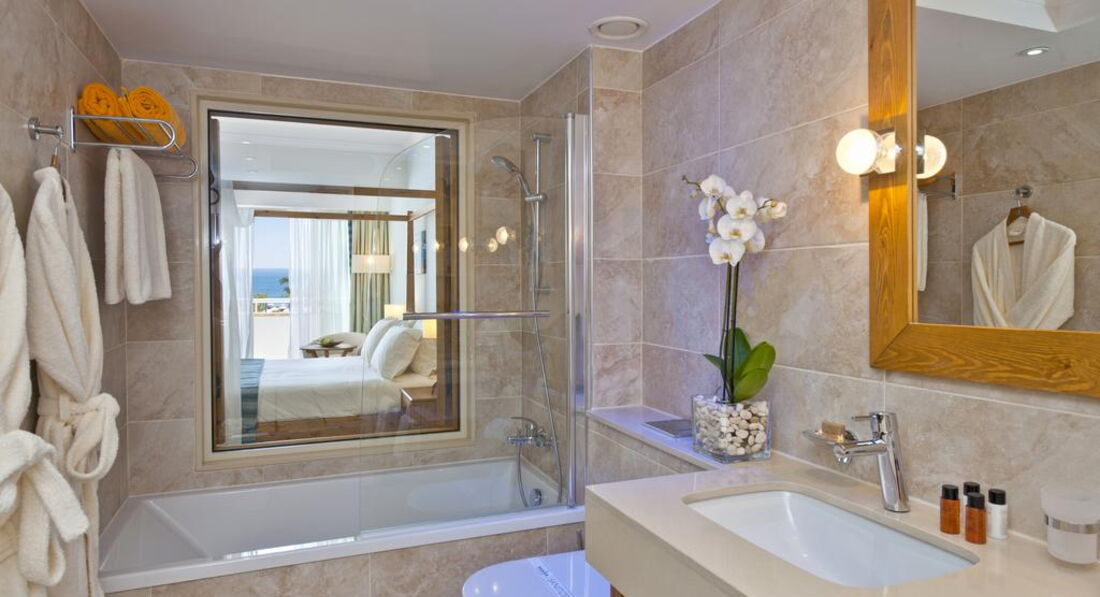 • Executive Suite Sea View – (36 м2, макс. 3 чол.) – однокімнатний номер, ванна кімната, балкон, вид на море