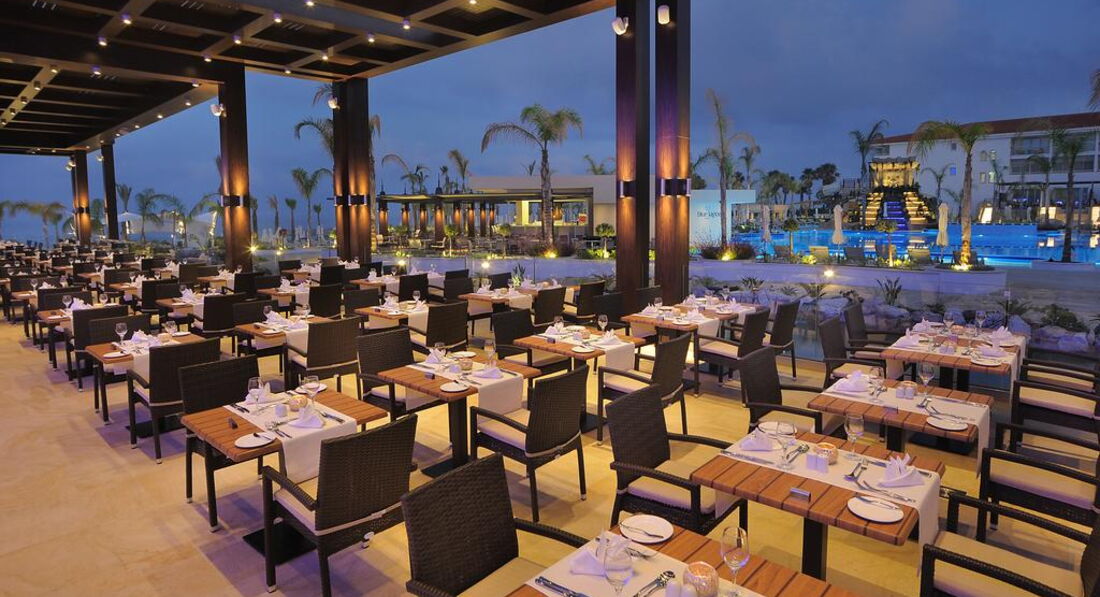 • ресторан кіпрської/грецької кухні Captains Deck на відкритому повітрі (вечеря); Паназіатський ресторан Seven Orchids просто неба (вечеря)