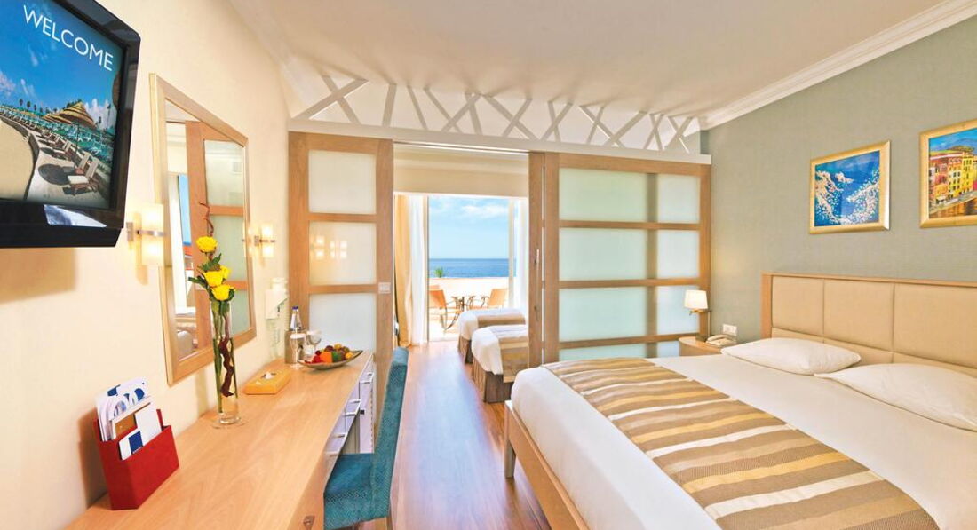 • Family Junior Suite Pool або Garden View - (32 м2, макс. 4 чол.) - однокімнатний номер, розділений розсувними дверима, ванна кімната, балкон або тераса, вид на басейн або сад