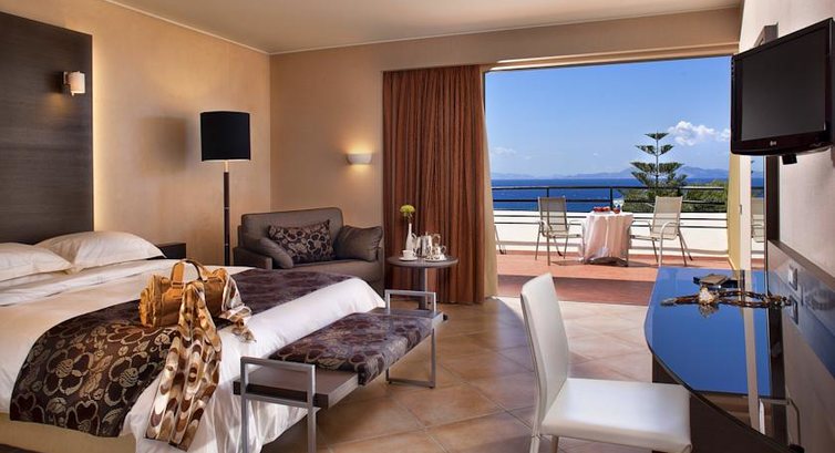 junior suite sea view (з видом на море, осн. ліжко - двоспальне та подвійний диван, дод. - розсувне двоспальне ліжко (2 розсувні односпальні за запором), макс. 3+1 чол., 36м2);