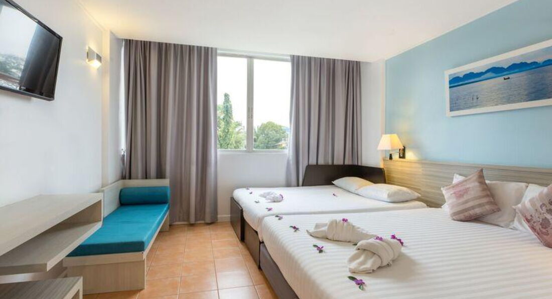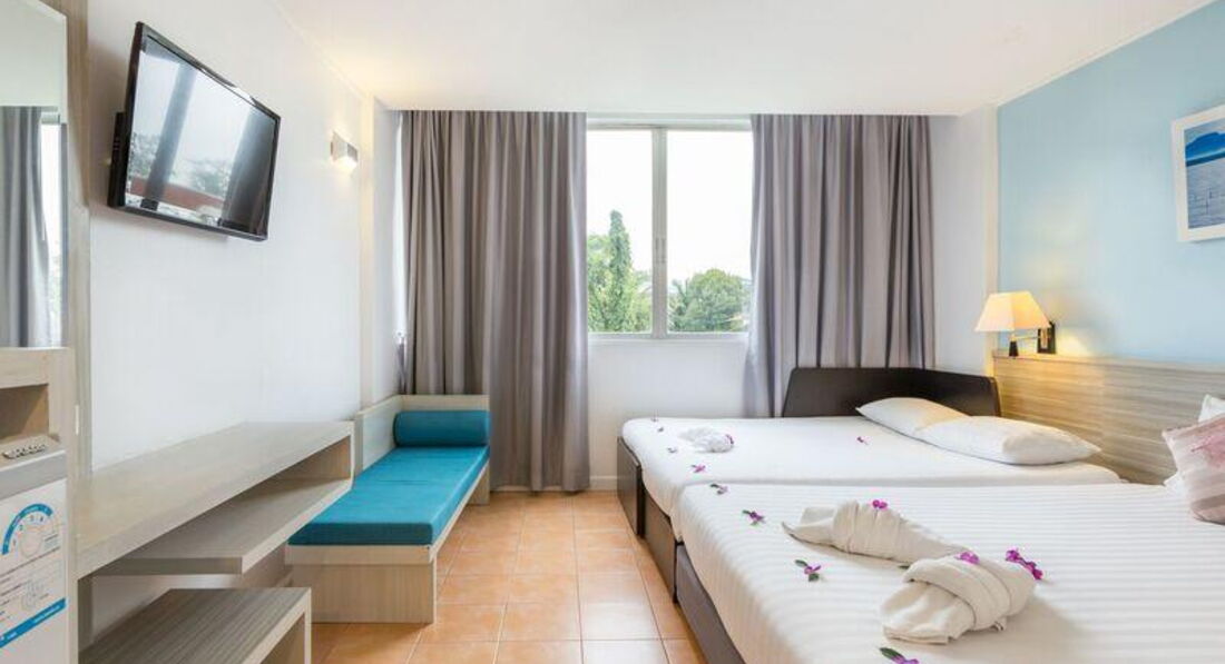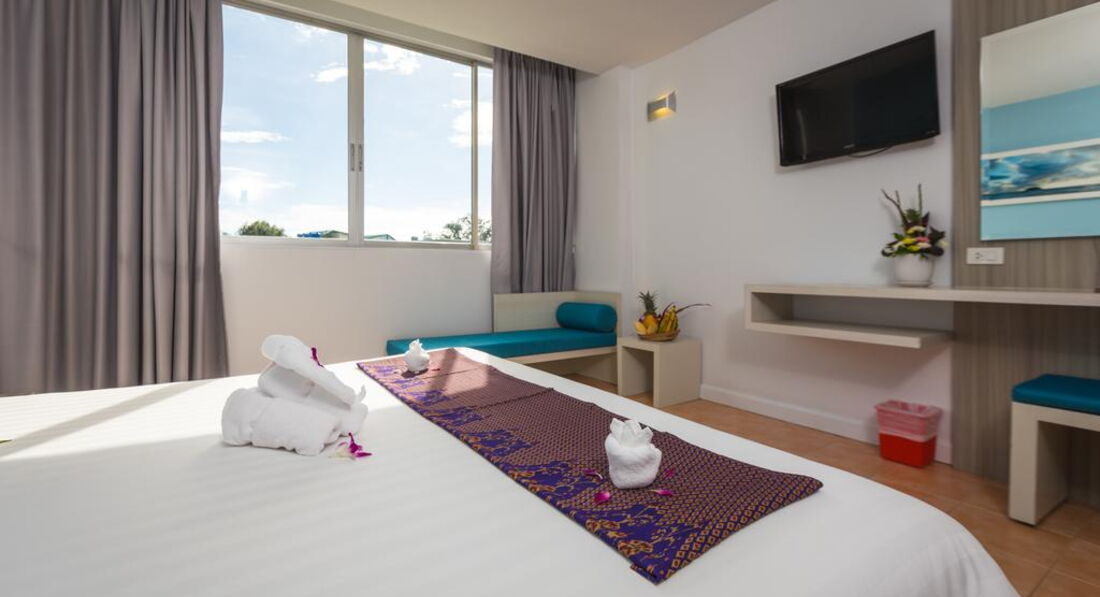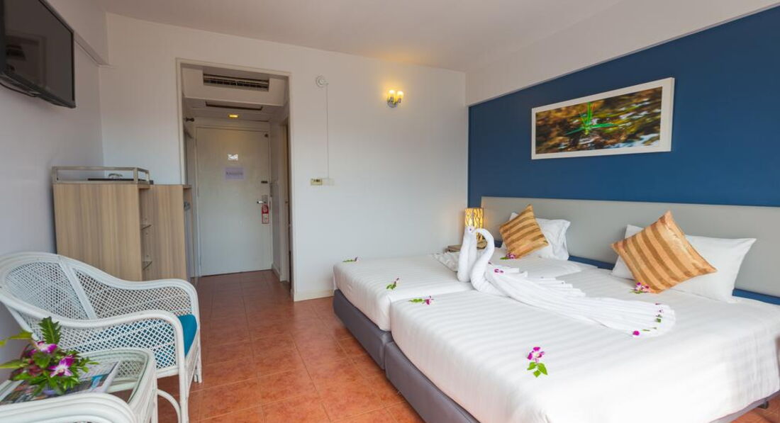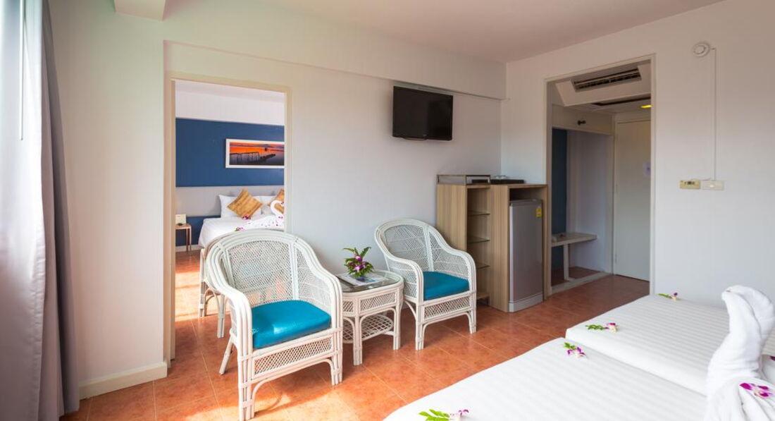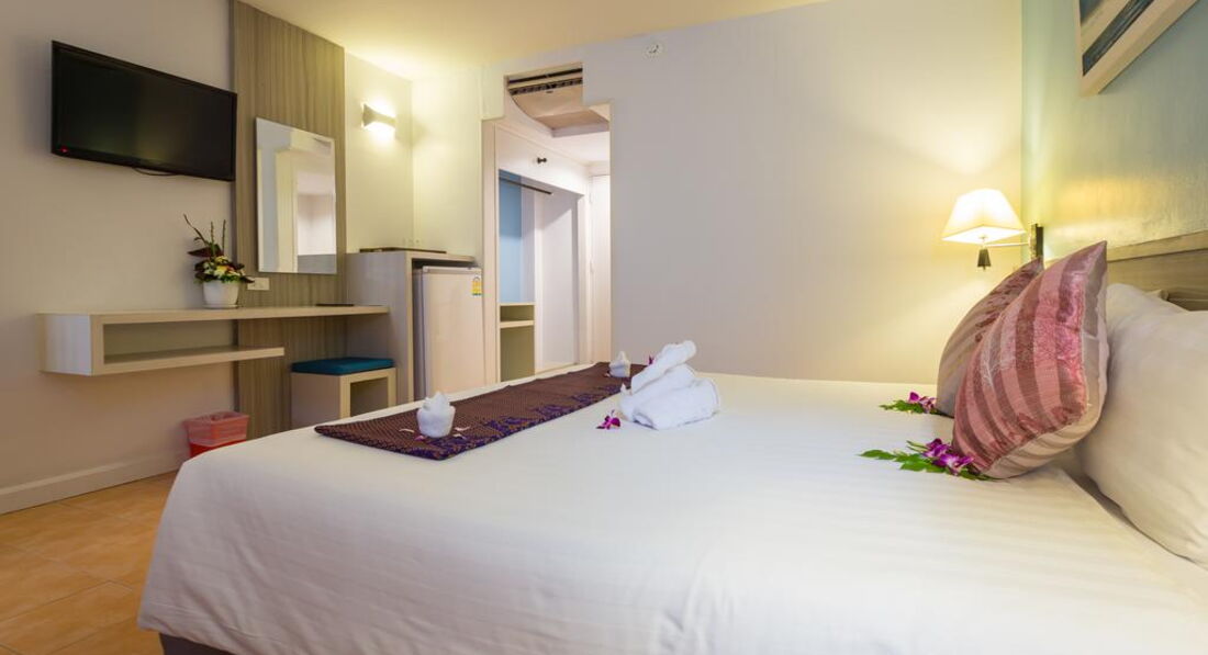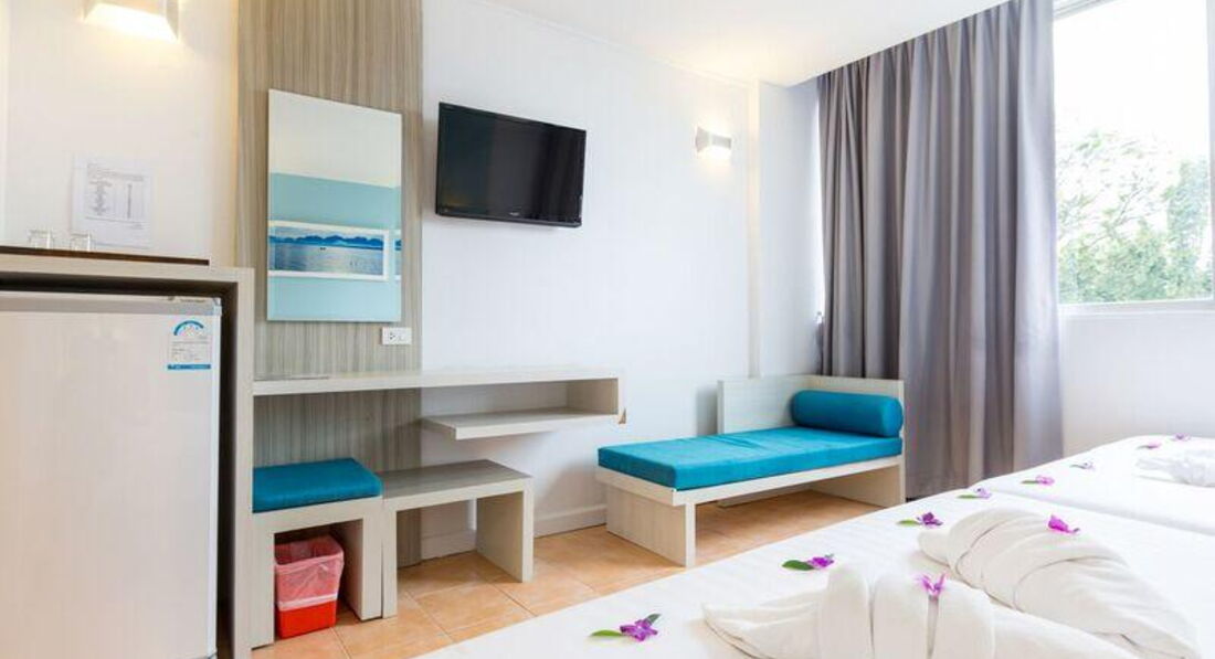 • кондиціонер • ТБ (є російський канал) • телефон • Wi-Fi (безкоштовно) • сейф • міні холодильник • 2 бут. води щодня безкоштовно • набір для приготування чаю/кави (deluxe w balcony, triple, family) • душ (з туалетним приладдям) • фен – на запит, на ресепшен • праска – на запит, на ресепшен • балкон (deluxe w balcony) Територія та послуги: • ресторан • бар • переговорна кімната (до 20 осіб) Розваги та спорт: Wi-Fi у лобі (безкоштовно) Для дітей: • дитяче ліжечко • стільці в ресторані Живлення: BB (сніданок шведський стіл – у корпусі далі від моря) Пляж: Громадський піщаний пляж. Оренда пляжного рушника платно – 20 бат/рушник/день, штраф за втрату – 400 бат.