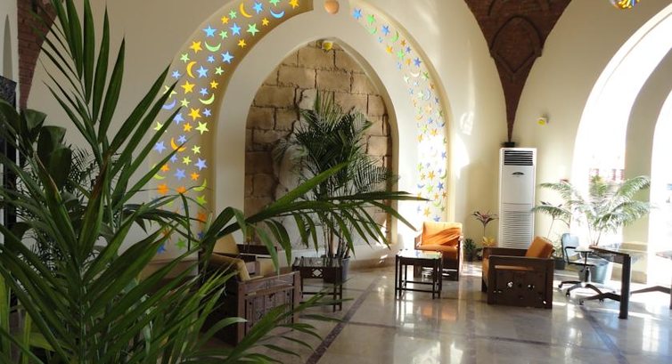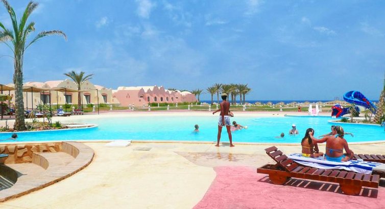В остальном питание среднее для Египта но голодными не останетесь есть и мясо, рыба ,фрукты но в малом количестве.Ездили с ребенком вот его накормить была проблема. В барах со спиртным большая проблема ,есть только местные разбавленные напитки и в ограниченном количестве,все это подается в 150 граммовых пластмассовых стаканчиках причем даже пиво(из 150 грамм треть пены) и взять например чистый виски и чистую колу в разных стаканах одному человеку бывает нереально( говорят мол возьми виски выйди из бара потом зайди снова и возьми колу-просто вообще "Все ВКЛЮЧЕНО")после такого в этот бар заходить просто не хочется вообще! при этом немцам и итальянцам наливают в стекло и разносят куда угодно(у них браслеты другого цвета)!Ездили в соседний городок "Эль Кусейн" (там одна грязь,смотреть не на что) и привезли от туда бутылку Колы когда зашли на территорию отеля нас чуть не порвали в клочья-думали что мы ее взяли в столовой! ППЦ!!! (Напитки и пиво наливают правда только из бутылок) после 00.00ч выпить и поесть негде и не чего.Только покупать спиртное за 30-40 у.е. и поесть также. Молодежи деваться после 00.00 просто некуда, кучковались в кольяной и развлекали себя сами.(вывозят по четвергам на дискотеку за 25 баксов). Отель для очень-очень спокойного отдыха.