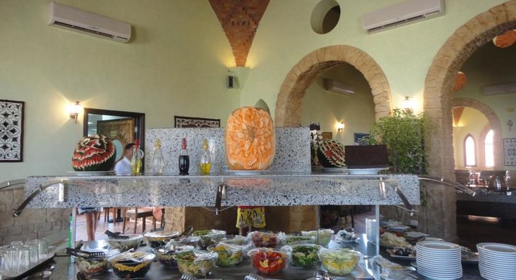 Питание однообразное,в основном тушеные овощи. Фруктов мало,мясных и рыбных продуктов пратически не предлагали.Вся пища несоленая и очень острая, с большим количеством томатпасты.Естественно, проблемы с пищеварением возникли сразу. Детского меню нет.Заявленных на сайте отеля ресторанов тоже нет и в помине,поэтому разнообразить свое меню нечем. Алкоголь местного производста(виски , водка, самбука) крепостью максимум 10-15% в 50 грмаммовых стаканчиках(по стаканчику в руки), пиво также по 50 грамм в одни руки.