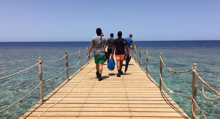 Пляж. Чистый и аккуратный. Песочек мягкий, хоть и с камушками. Лежаков на пляже много, но иногда не хватает, потому что многие любят бросать полотенца на лежак и уходить неизвестно куда и неизвестно насколько)))) Зато у бассейнов всегда найдутся свободные лежаки))) Заход в море: есть кораллы, где не удобно без специальных тапочек заходить; также есть расчищенные от кораллов песочные заходы, что очень и очень удобно! :) Пирс есть, но он не достроен еще. Т.е. по нему можно гулять, делать фотографии, наслаждаться морским бризом и солнцем, но с него спуститься в воду можно только по страшной строительной лестнице... и никаких спасателей на пирсе я не заметила)))