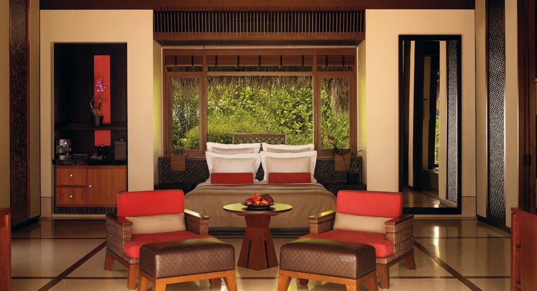 5 Grand Beach Villa 2 Bedroom (322 м², макс. 4+2 або 2+4 чол.). Просторі вілли, що сховалися в зелені тропічного саду. Мають 2 спальні, вітальню, ванну кімнату з великою ванною на двох. Затінена веранда складається із зони їдальні та зони відпочинку. З вітальні відкривається прямий краєвид на океан, є власна ділянка пляжу та басейн (50 м²). Доріжкою, що веде до океану, можуть скористатися тільки гості даної вілли.